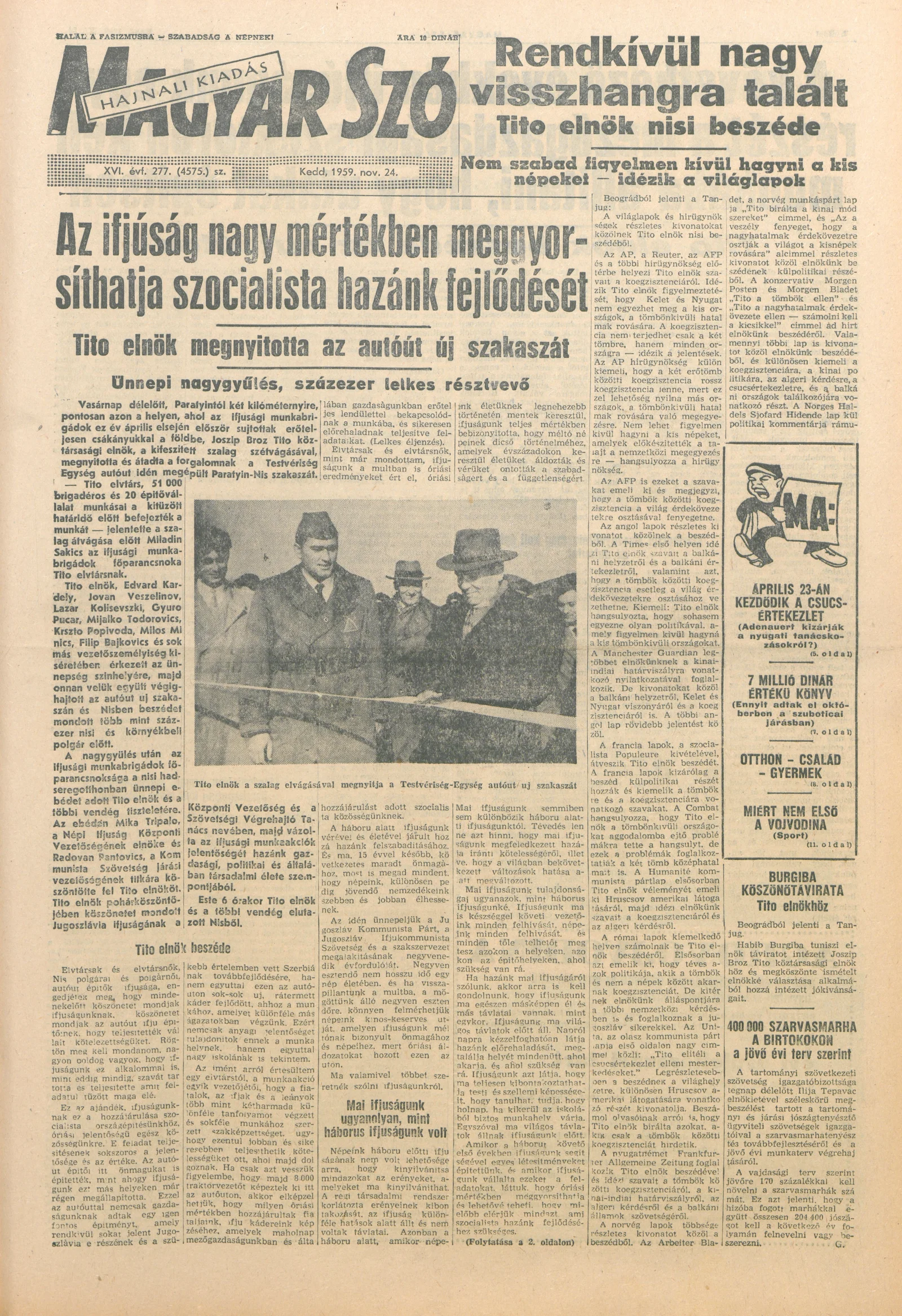 Magyar Szó, 16. évf. 1959. november 24. 277. sz. 1–18. oldal