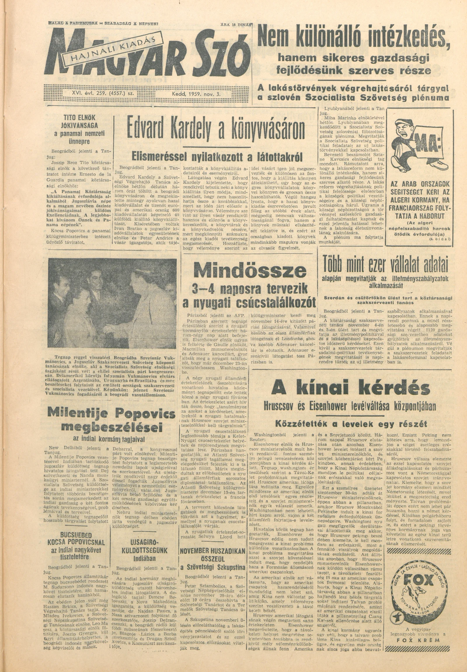 Magyar Szó, 16. évf. 1959. november 3. 259. sz. 1–20. oldal