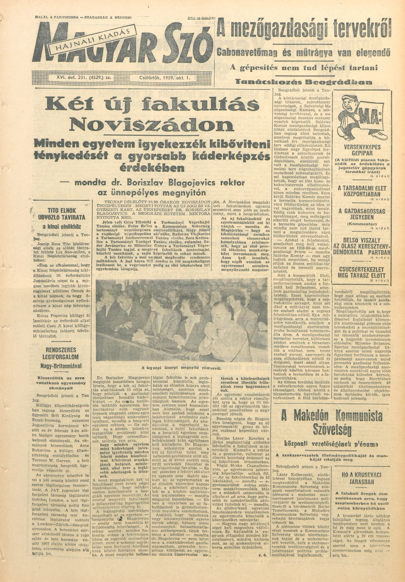 Magyar Szó, 16. évf. 1959. október 1. 231. sz. 1–20. oldal