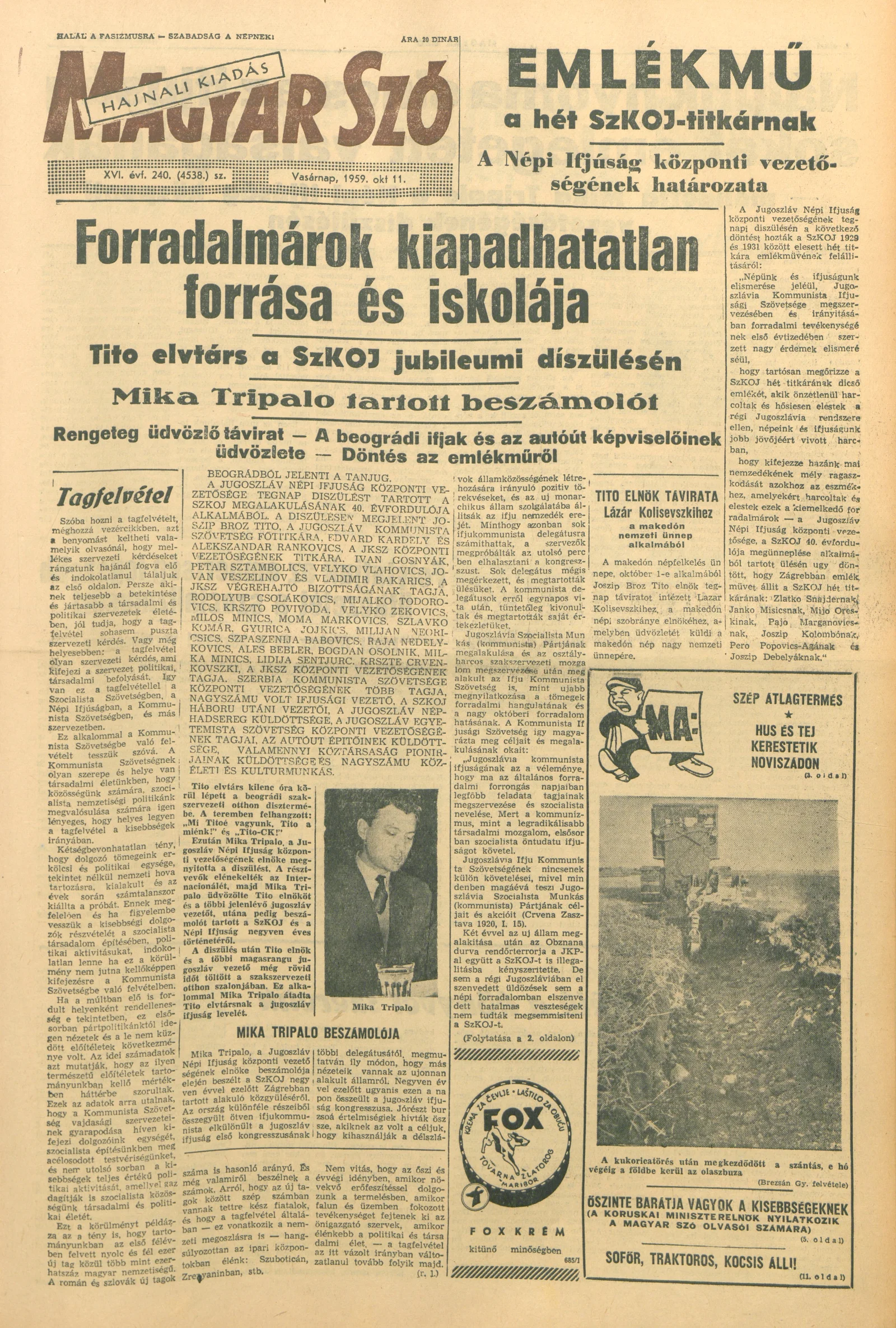 Magyar Szó, 16. évf. 1959. október 11. 240. sz. 1–20. oldal