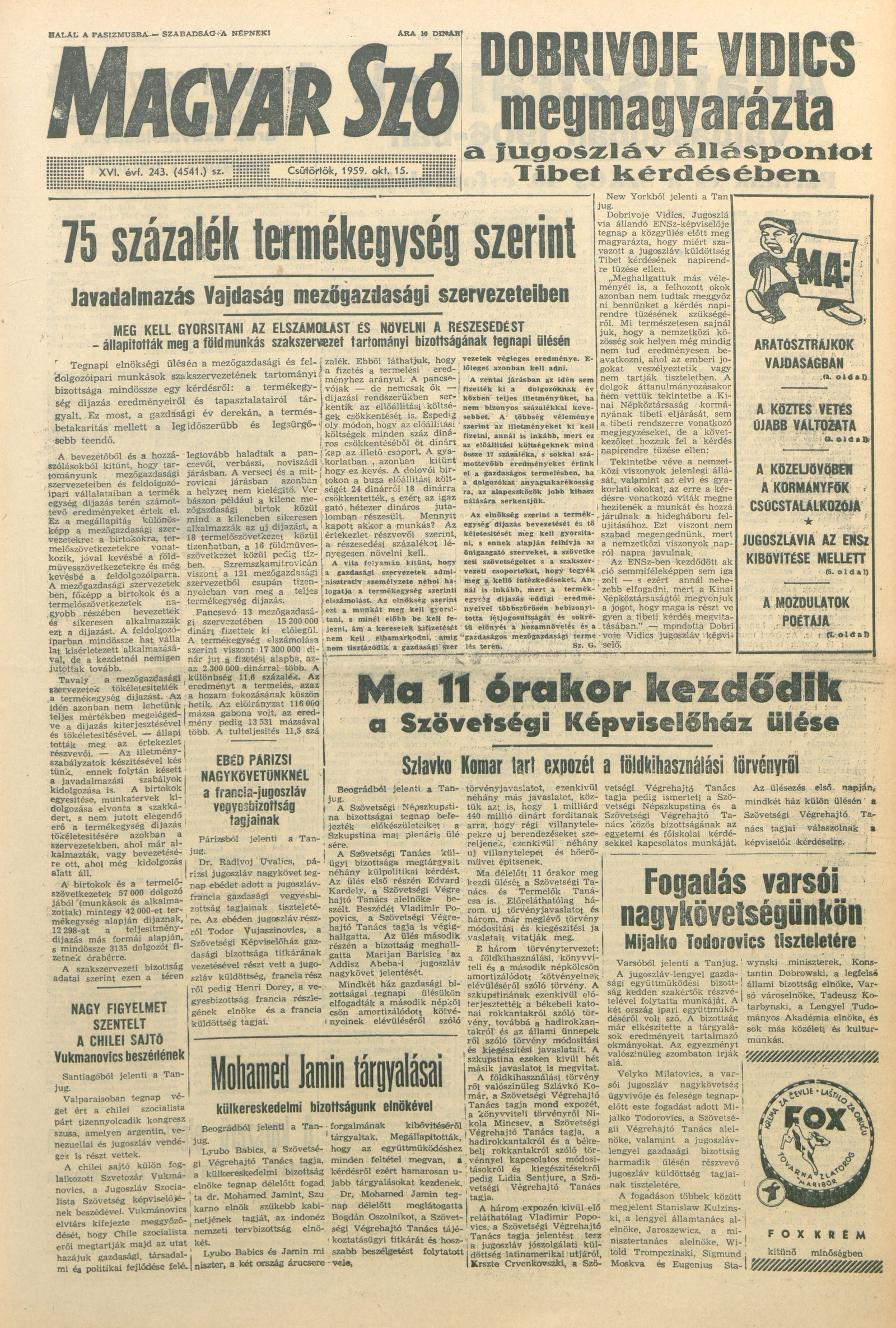 Magyar Szó, 16. évf. 1959. október 15. 243. sz. 1–22. oldal