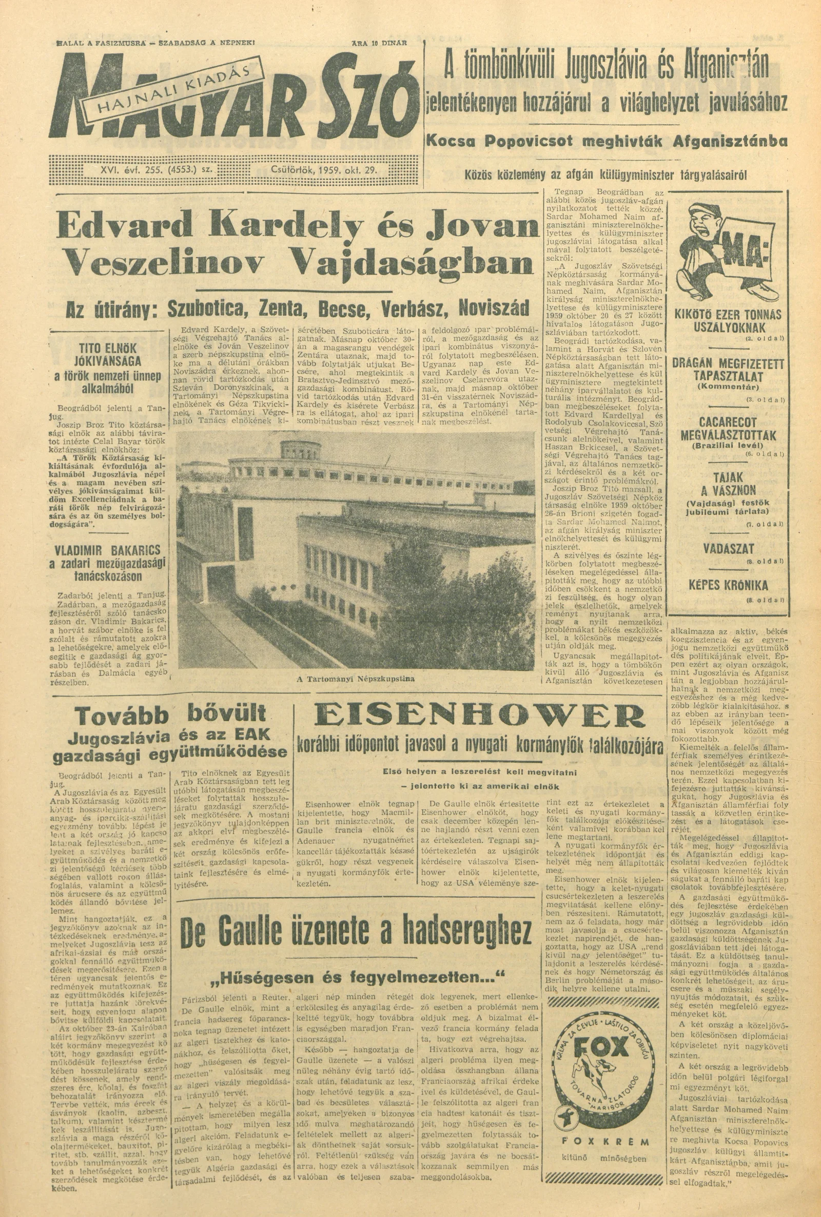 Magyar Szó, 16. évf. 1959. október 29. 255. sz. 1–22. oldal