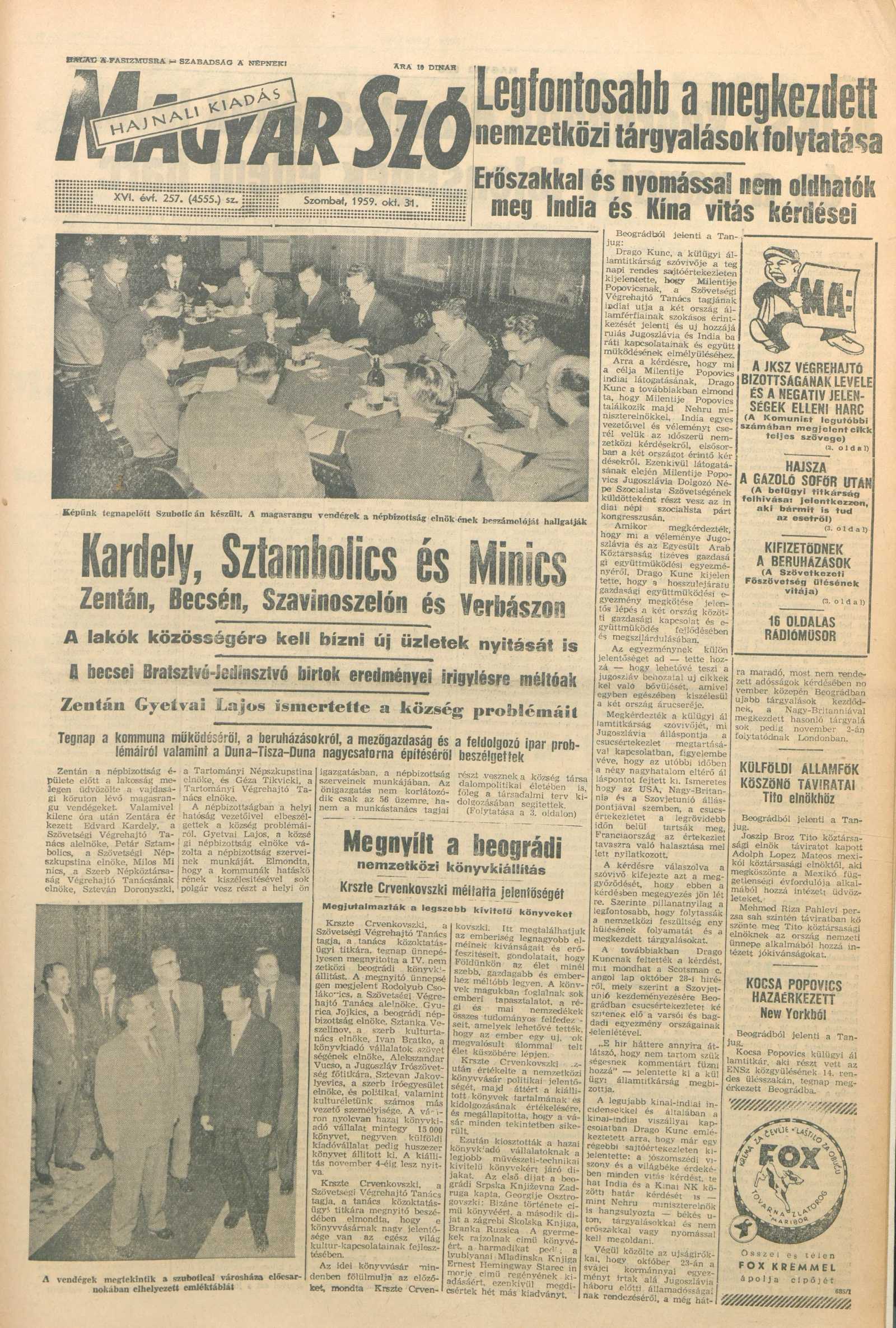 Magyar Szó, 16. évf. 1959. október 31. 257. sz. 1–24. oldal