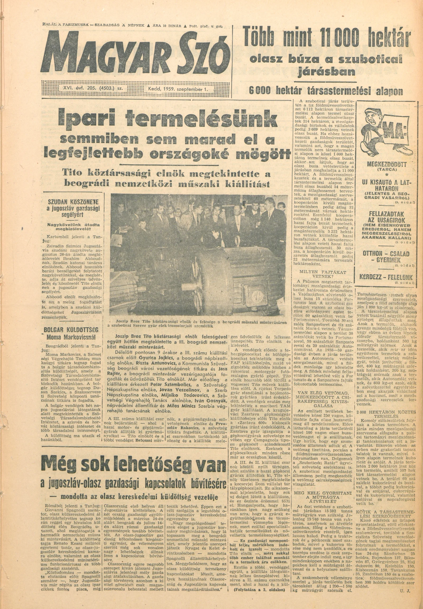 Magyar Szó, 16. évf. 1959. szeptember 1. 205. sz. 1–20. oldal