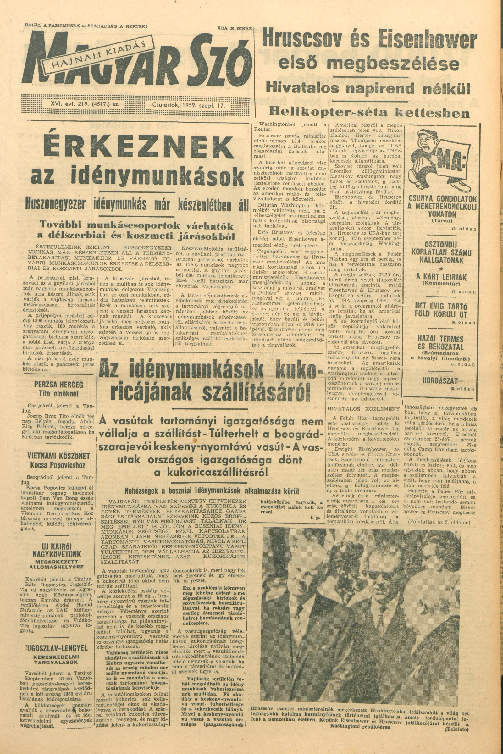 Magyar Szó, 16. évf. 1959. szeptember 17. 219. sz. 1–22. oldal