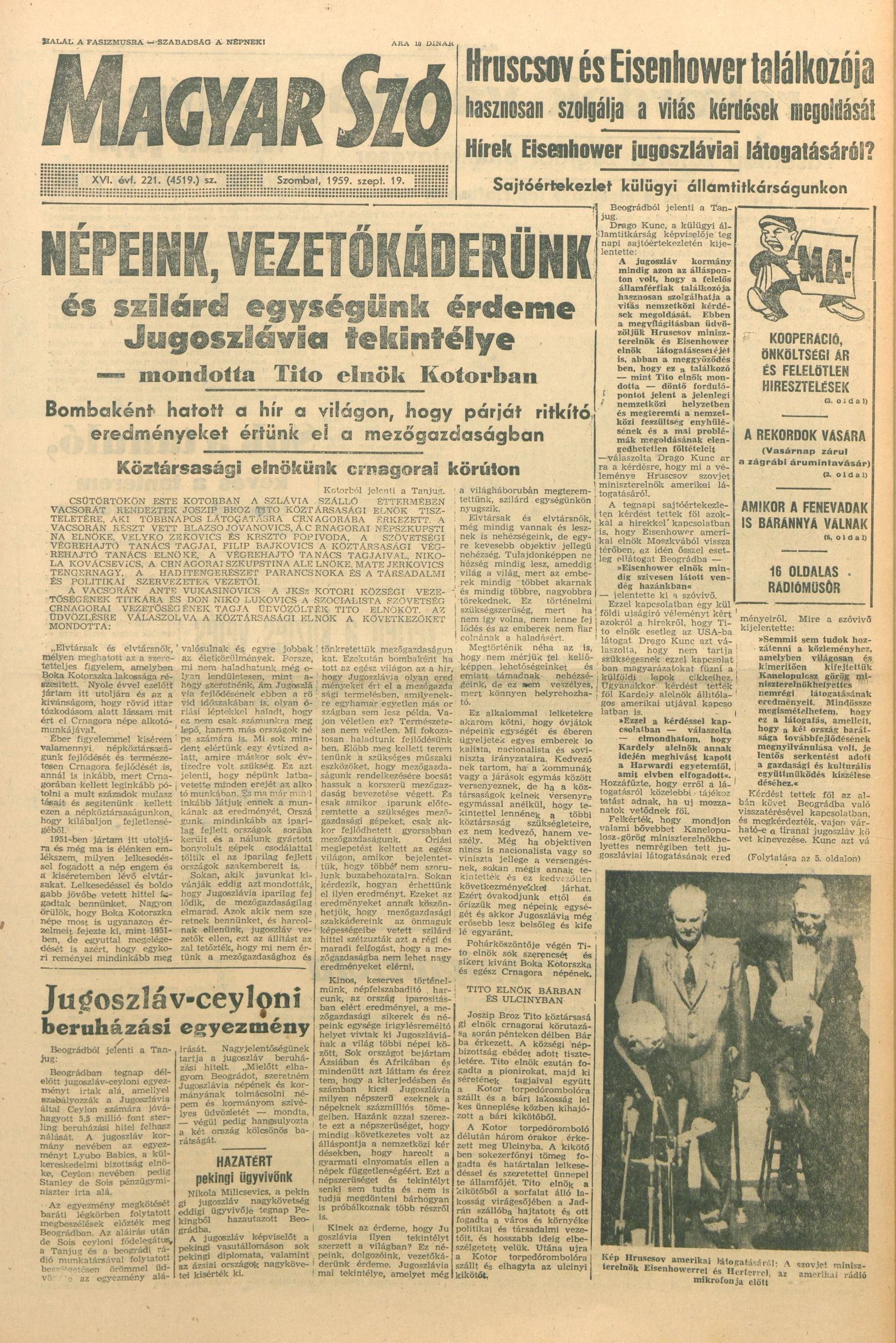 Magyar Szó, 16. évf. 1959. szeptember 19. 221. sz. 1–26. oldal