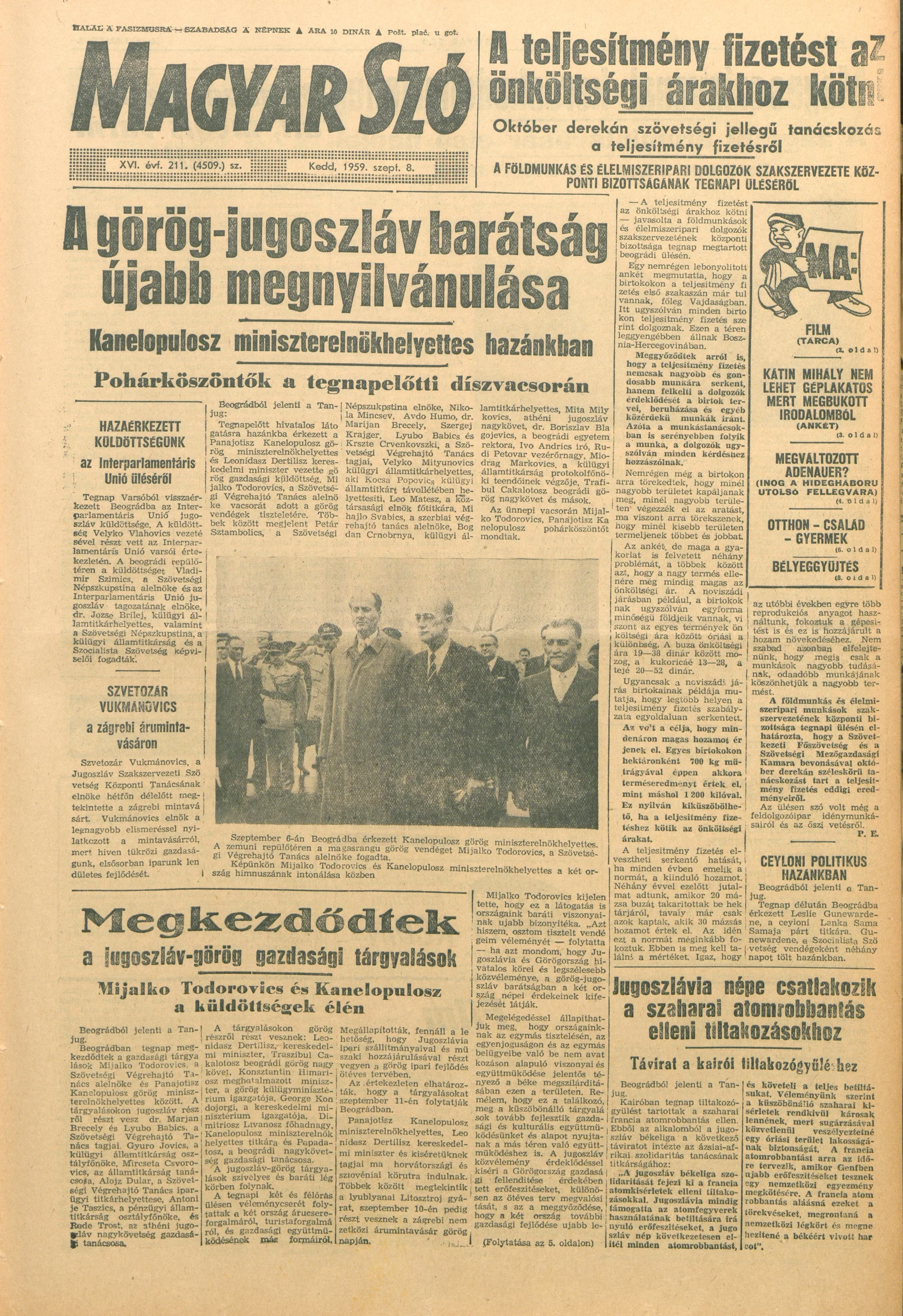 Magyar Szó, 16. évf. 1959. szeptember 8. 211. sz. 1–22. oldal