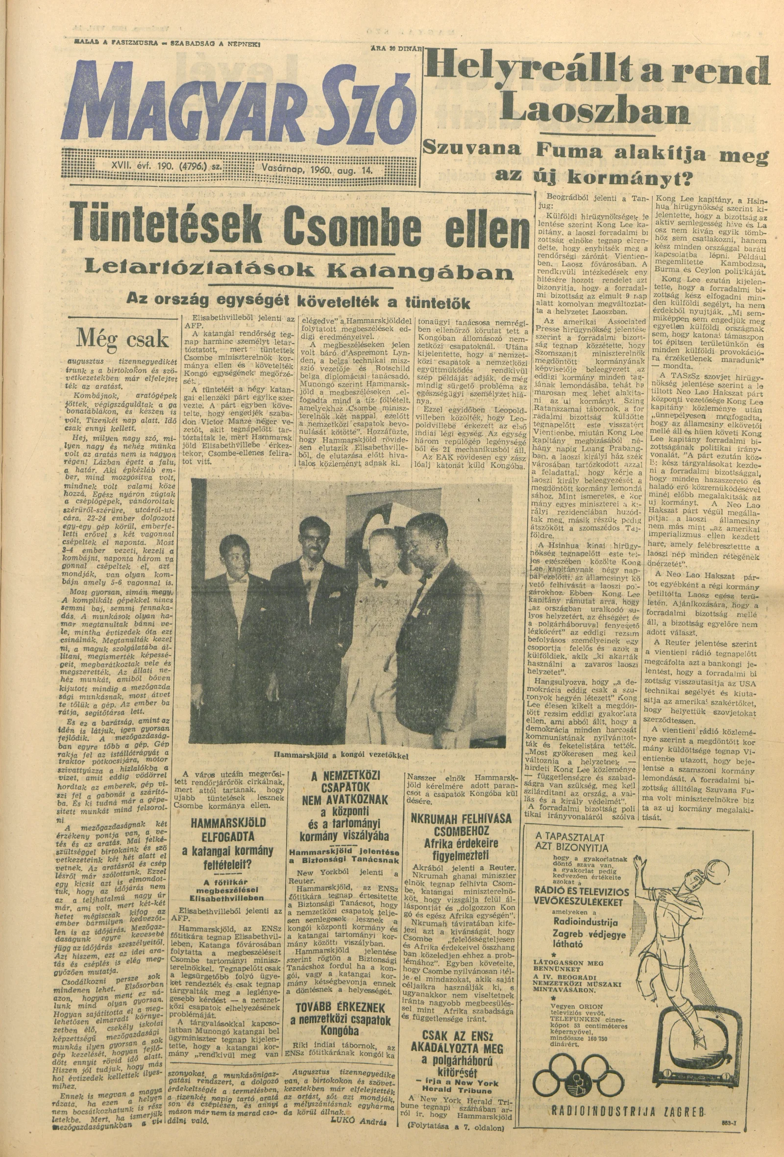 Magyar Szó, 17. évf. 1960. augusztus 14. 190. sz. 1–32. oldal