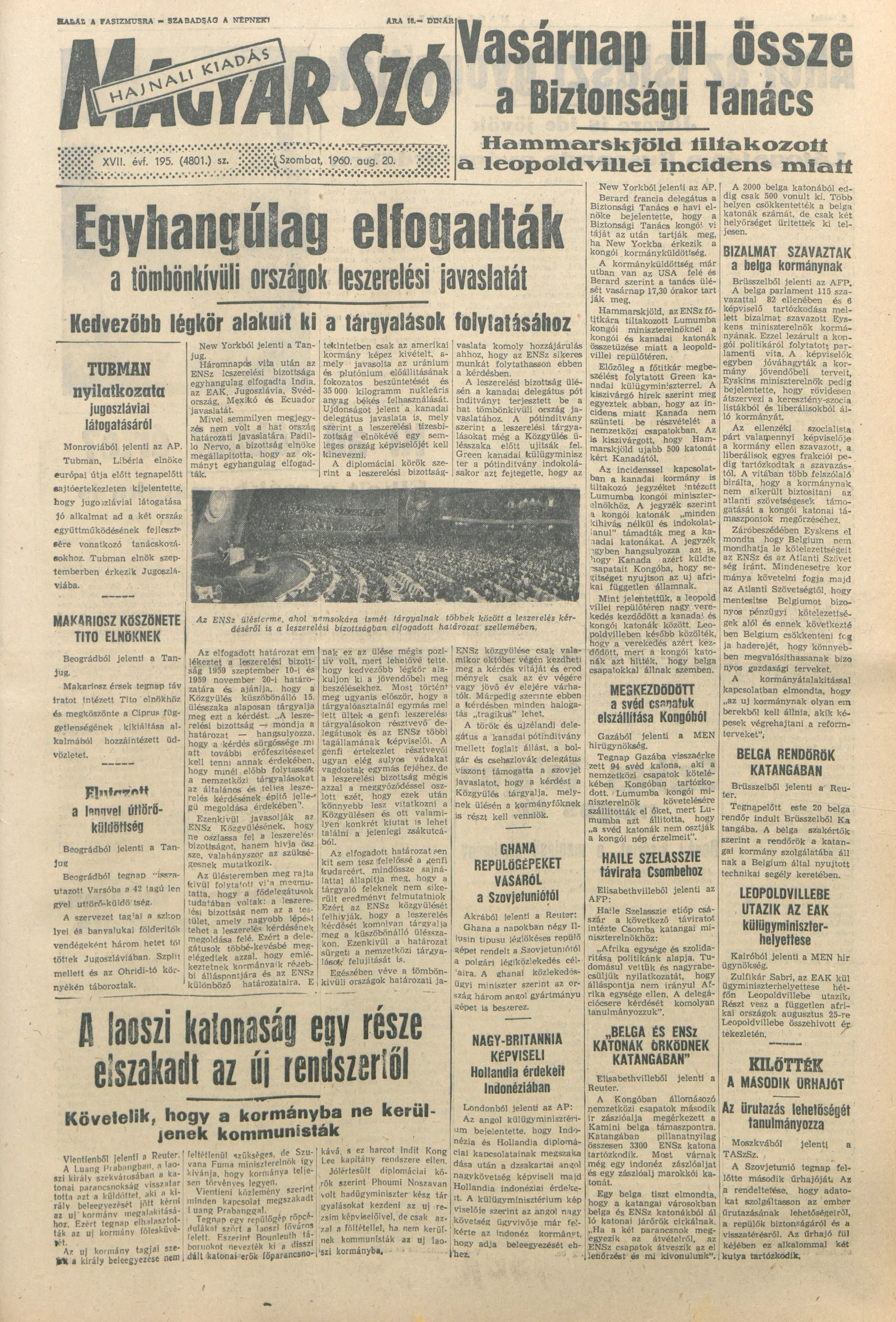 Magyar Szó, 17. évf. 1960. augusztus 20. 195. sz. 1–22. oldal