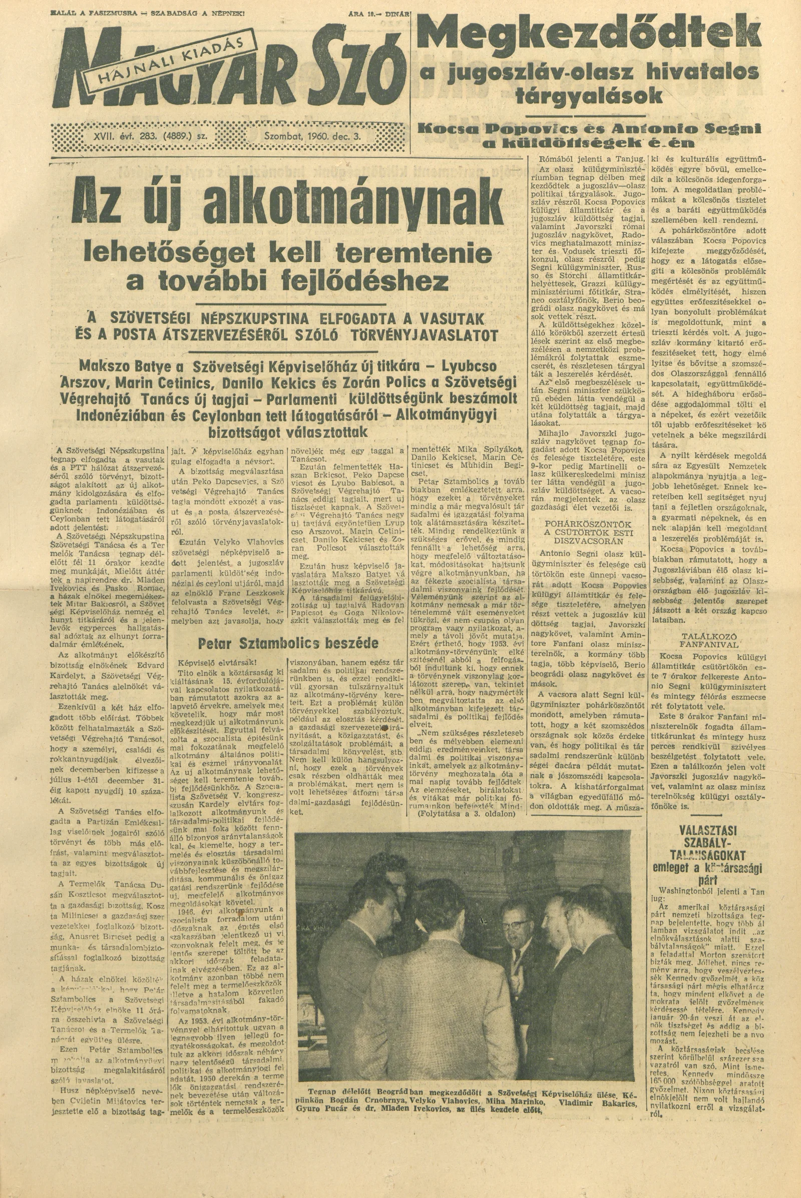 Magyar Szó, 17. évf. 1960. december 3. 283. sz. 1–28. oldal