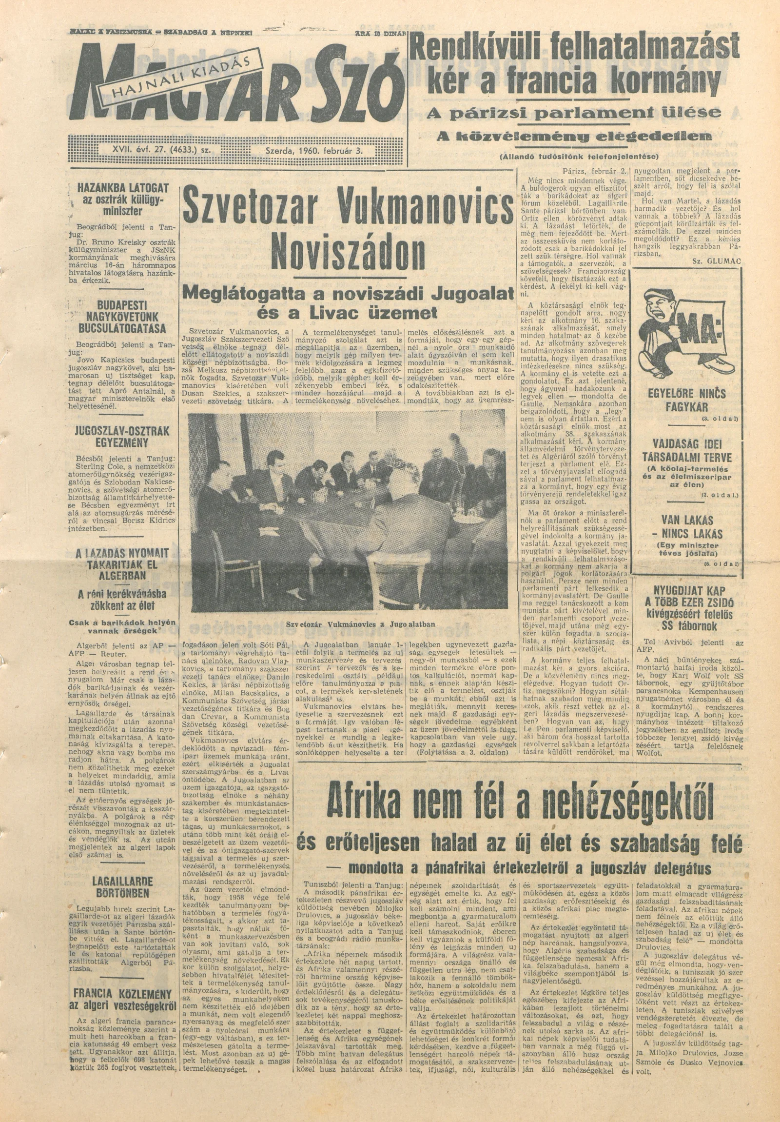 Magyar Szó, 17. évf. 1960. február 3. 27. sz. 1–20. oldal