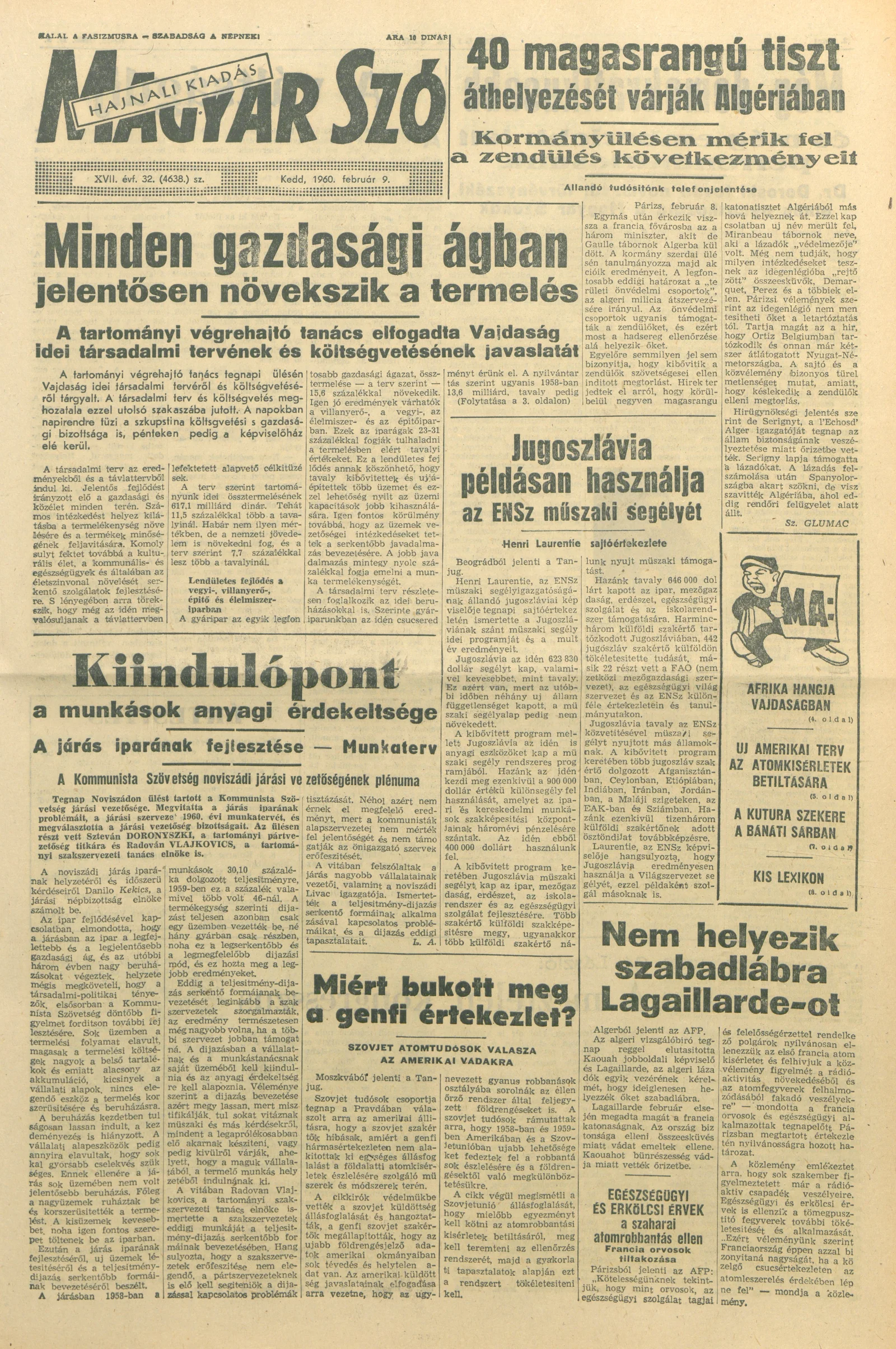 Magyar Szó, 17. évf. 1960. február 9. 32. sz. 1–12. oldal