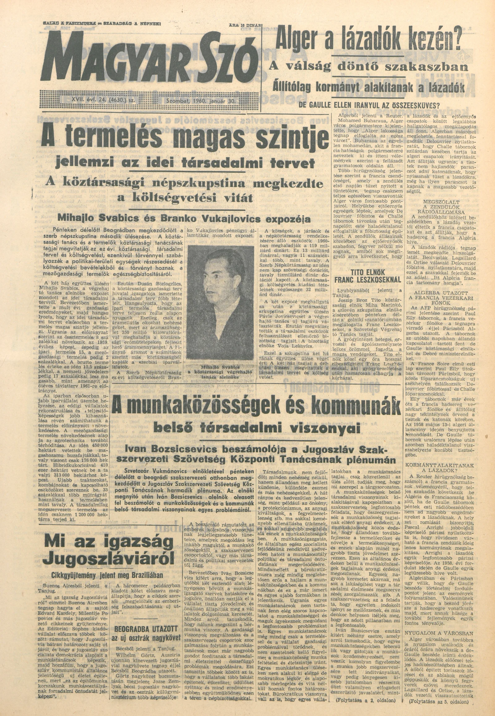 Magyar Szó, 17. évf. 1960. január 30. 24. sz. 1–24. oldal