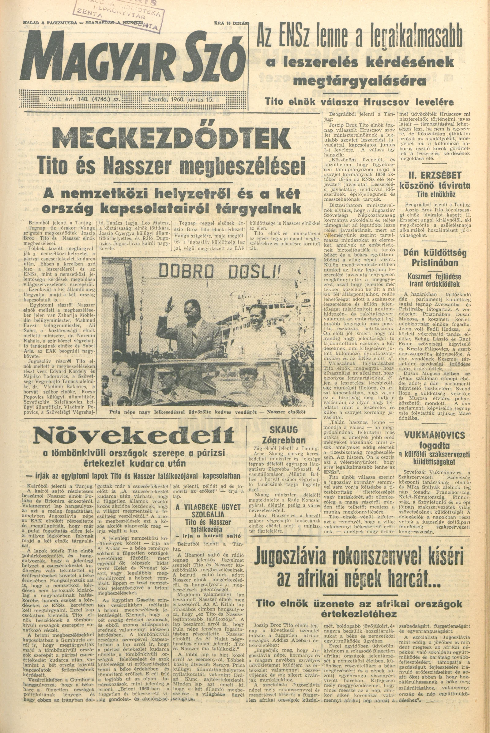 Magyar Szó, 17. évf. 1960. június 15. 140. sz. 1–12. oldal
