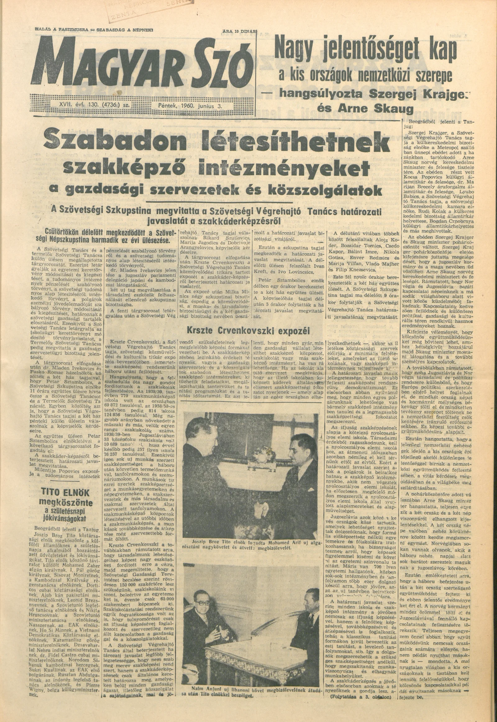 Magyar Szó, 17. évf. 1960. június 3. 130. sz. 1–16. oldal