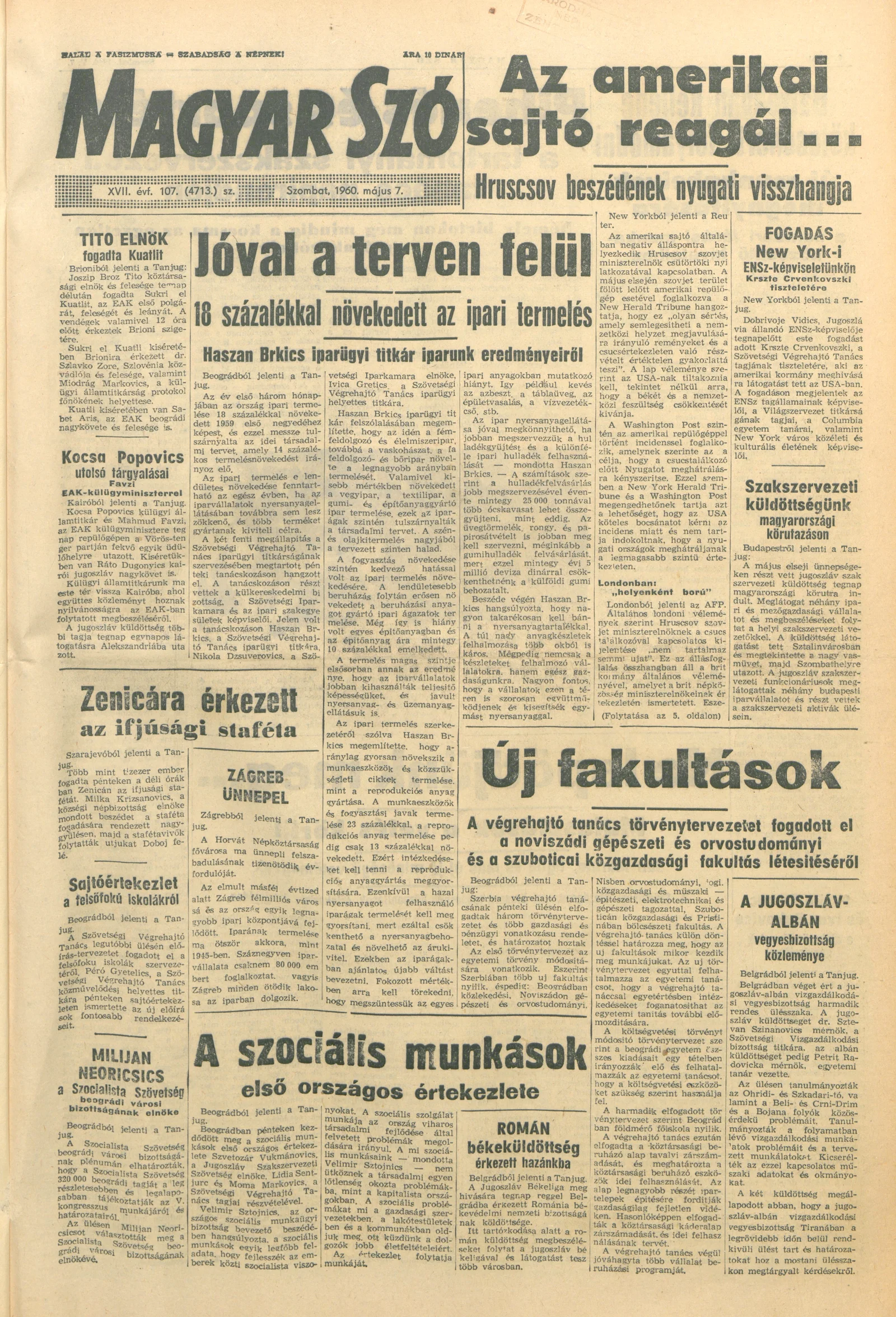 Magyar Szó, 17. évf. 1960. május 7. 107. sz. 1–16. oldal