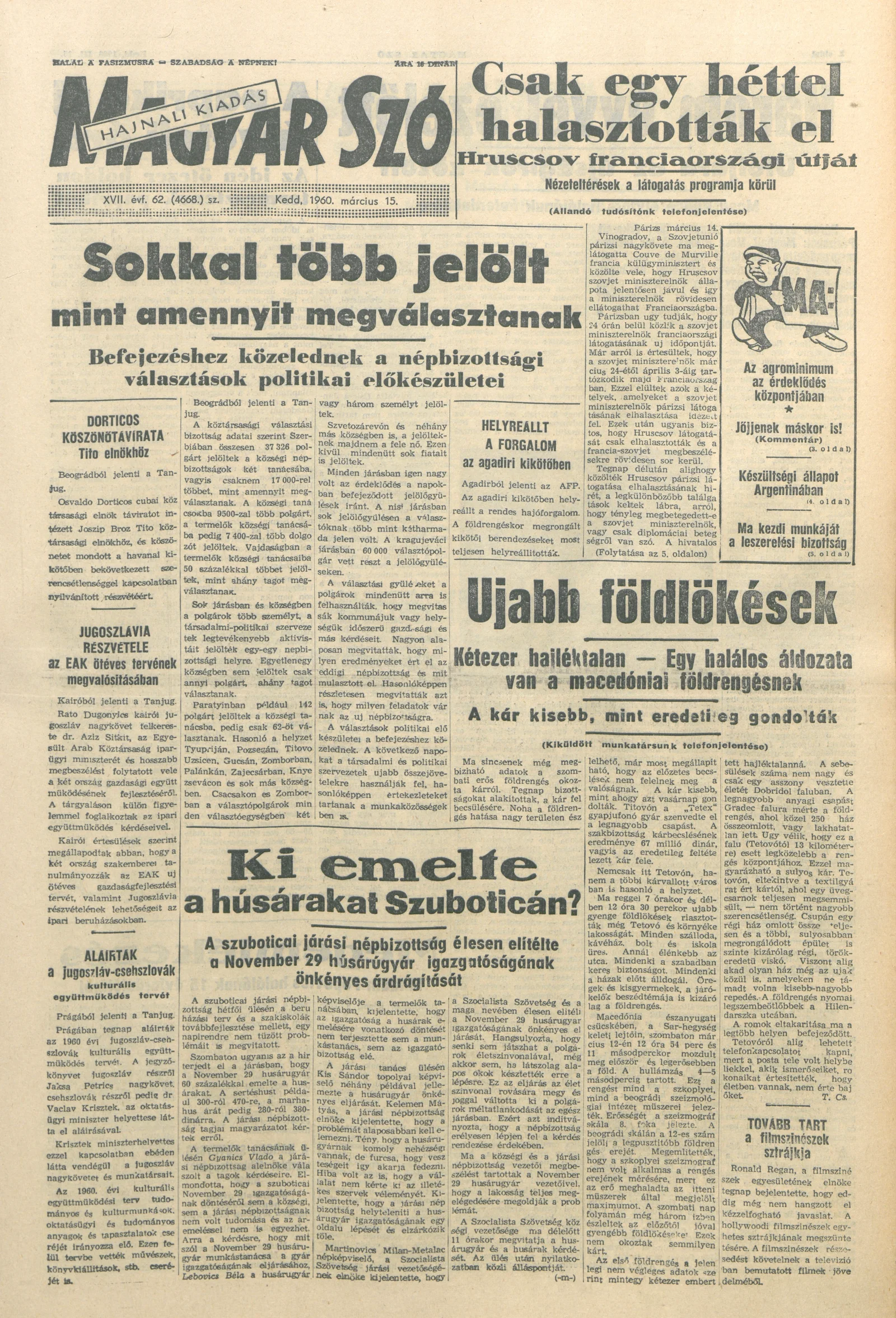 Magyar Szó, 17. évf. 1960. március 15. 62. sz. 1–20. oldal