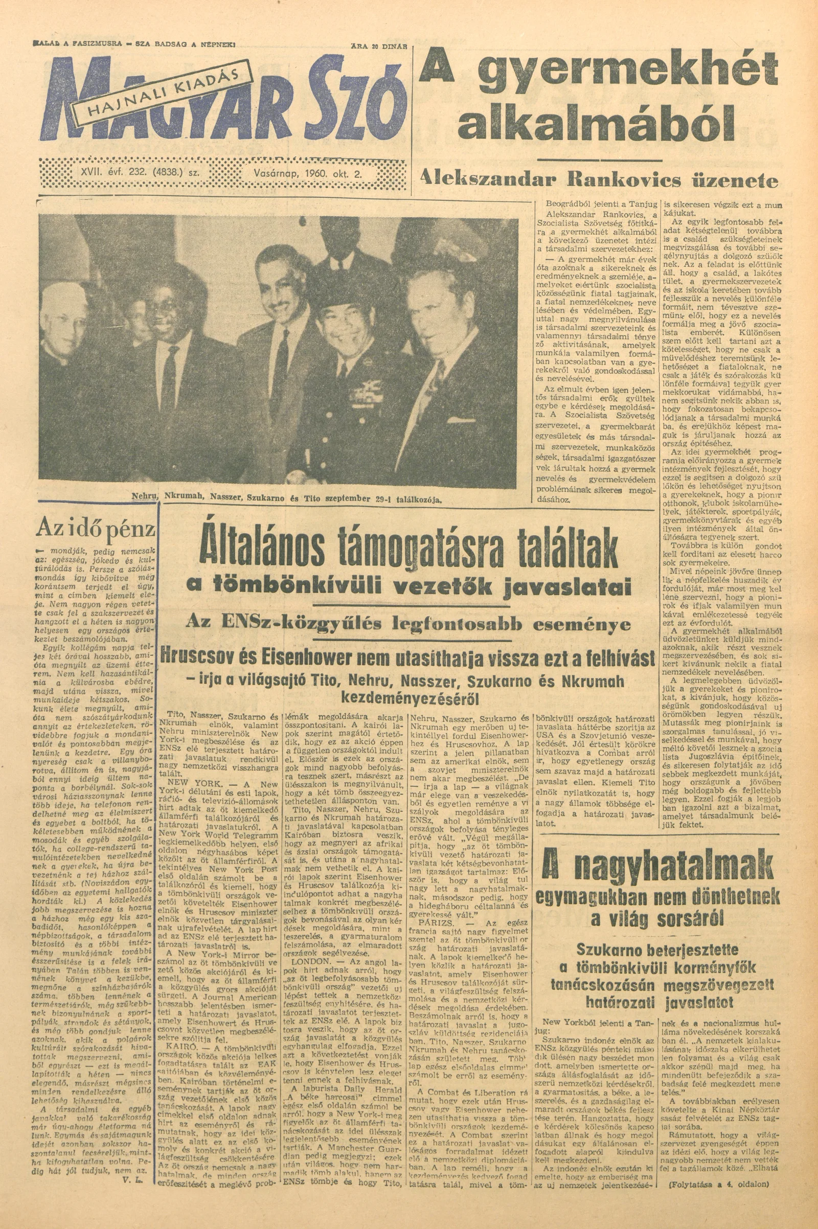 Magyar Szó, 17. évf. 1960. október 2. 232. sz. 1–30. oldal