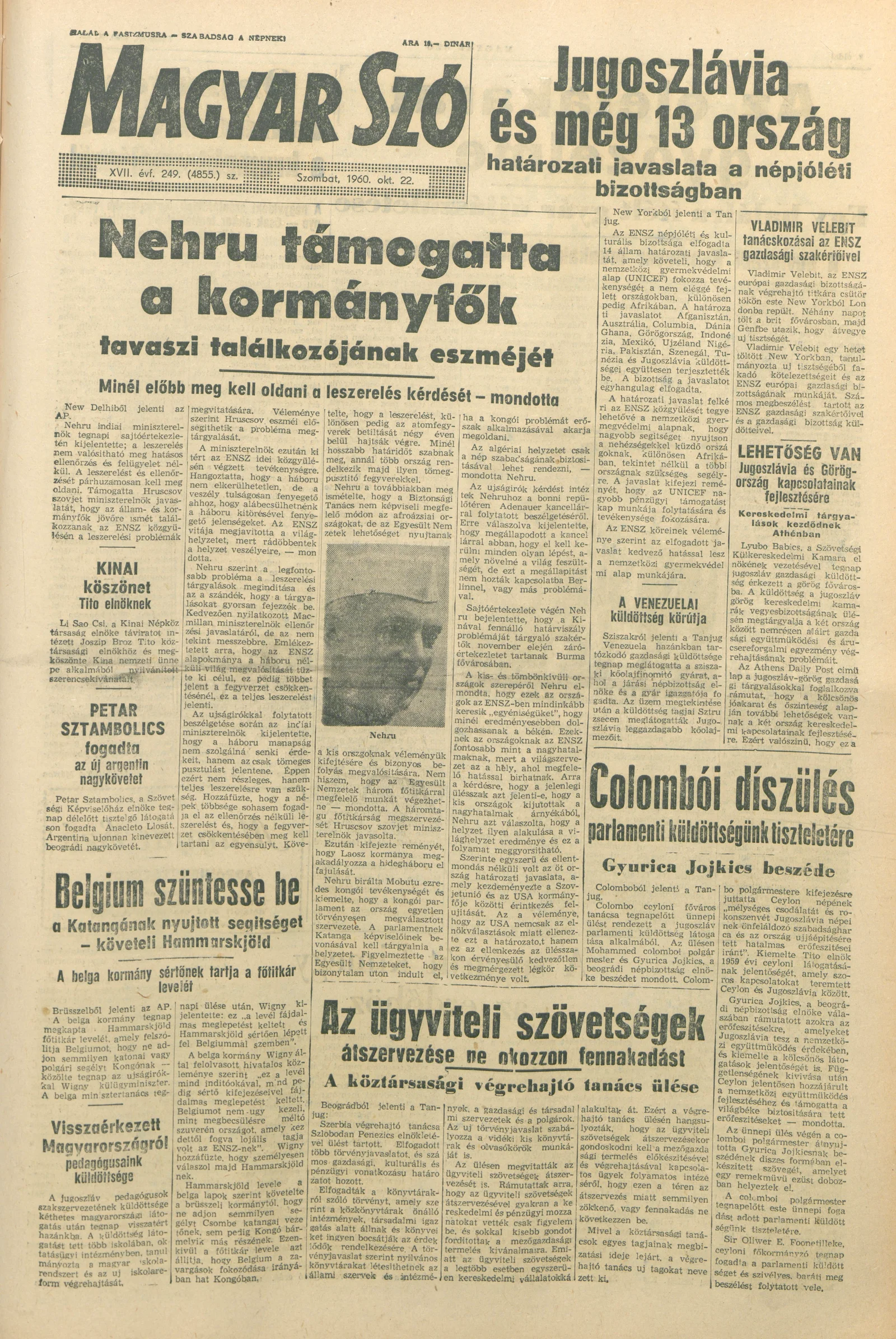 Magyar Szó, 17. évf. 1960. október 22. 249. sz. 1–26. oldal