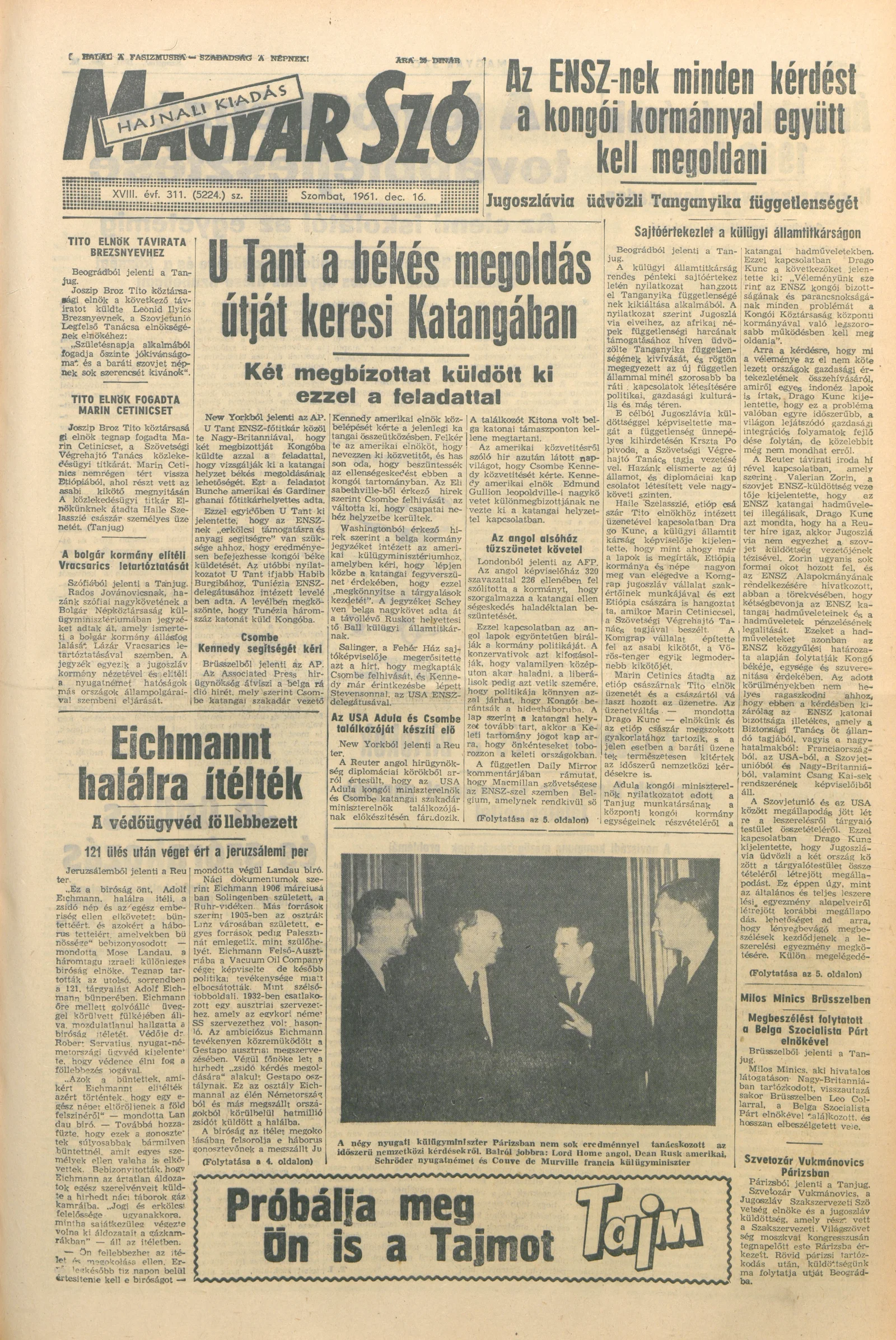 Magyar Szó, 18. évf. 1961. december 16. 311. sz. 1–12. oldal
