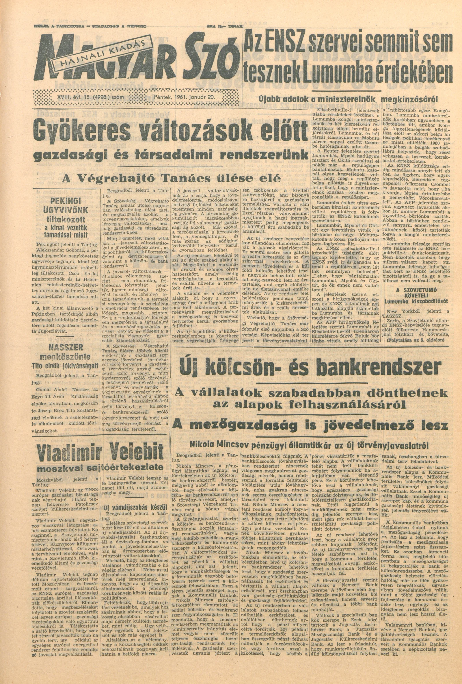Magyar Szó, 18. évf. 1961. január 20. 15. sz. 1–12. oldal
