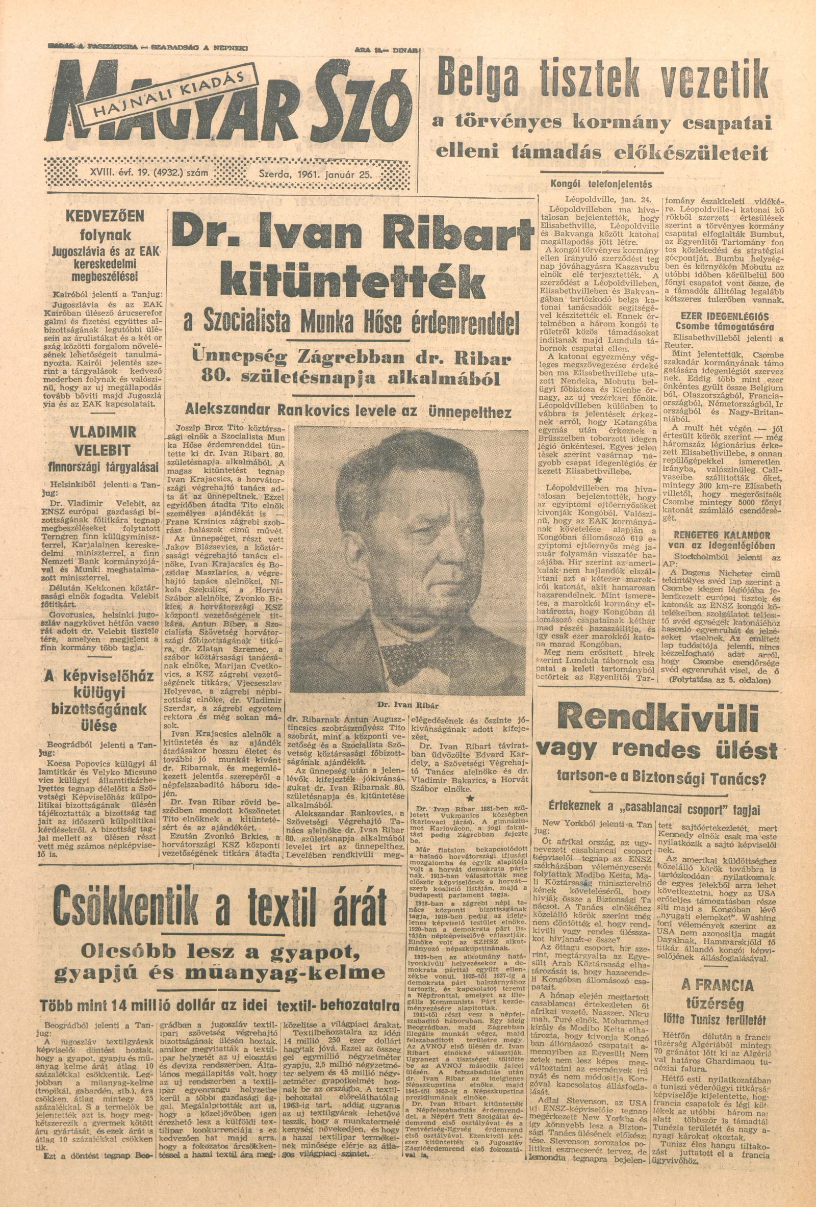 Magyar Szó, 18. évf. 1961. január 25. 19. sz. 1–12. oldal