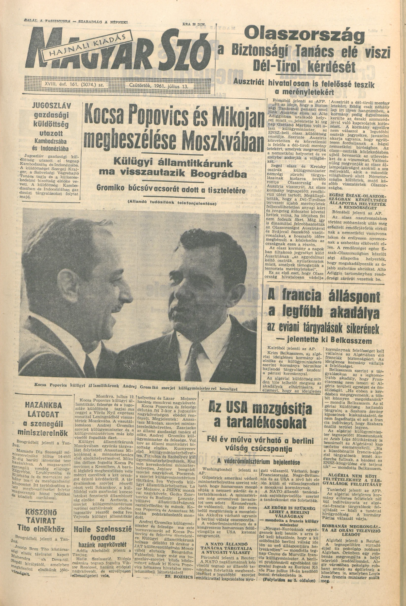 Magyar Szó, 18. évf. 1961. július 13. 161. sz. 1–12. oldal