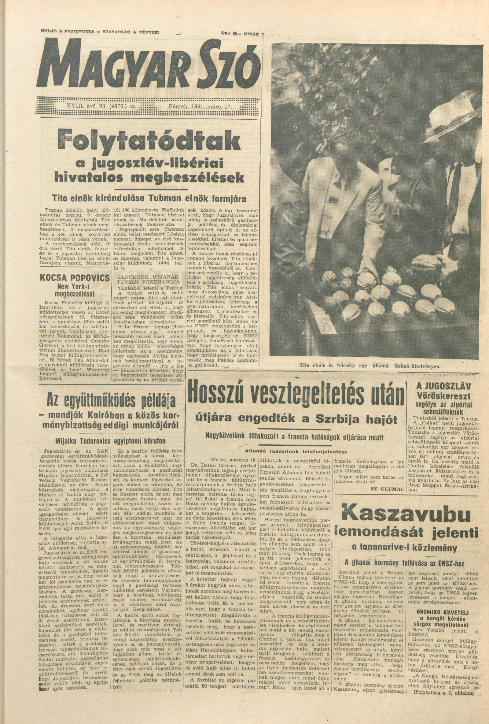 Magyar Szó, 18. évf. 1961. március 17. 63. sz. 1–16. oldal