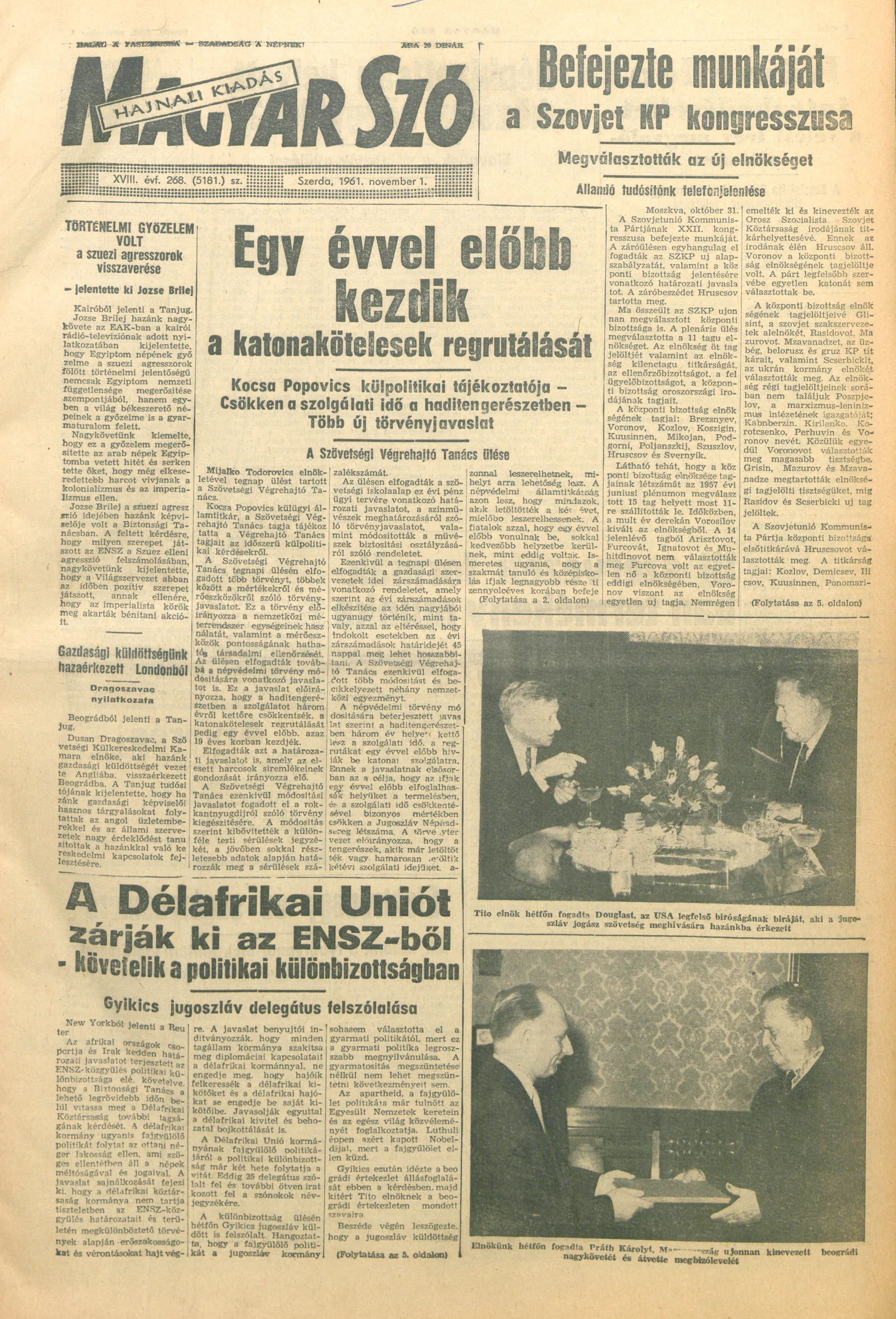 Magyar Szó, 18. évf. 1961. november 1. 268. sz. 1–14. oldal
