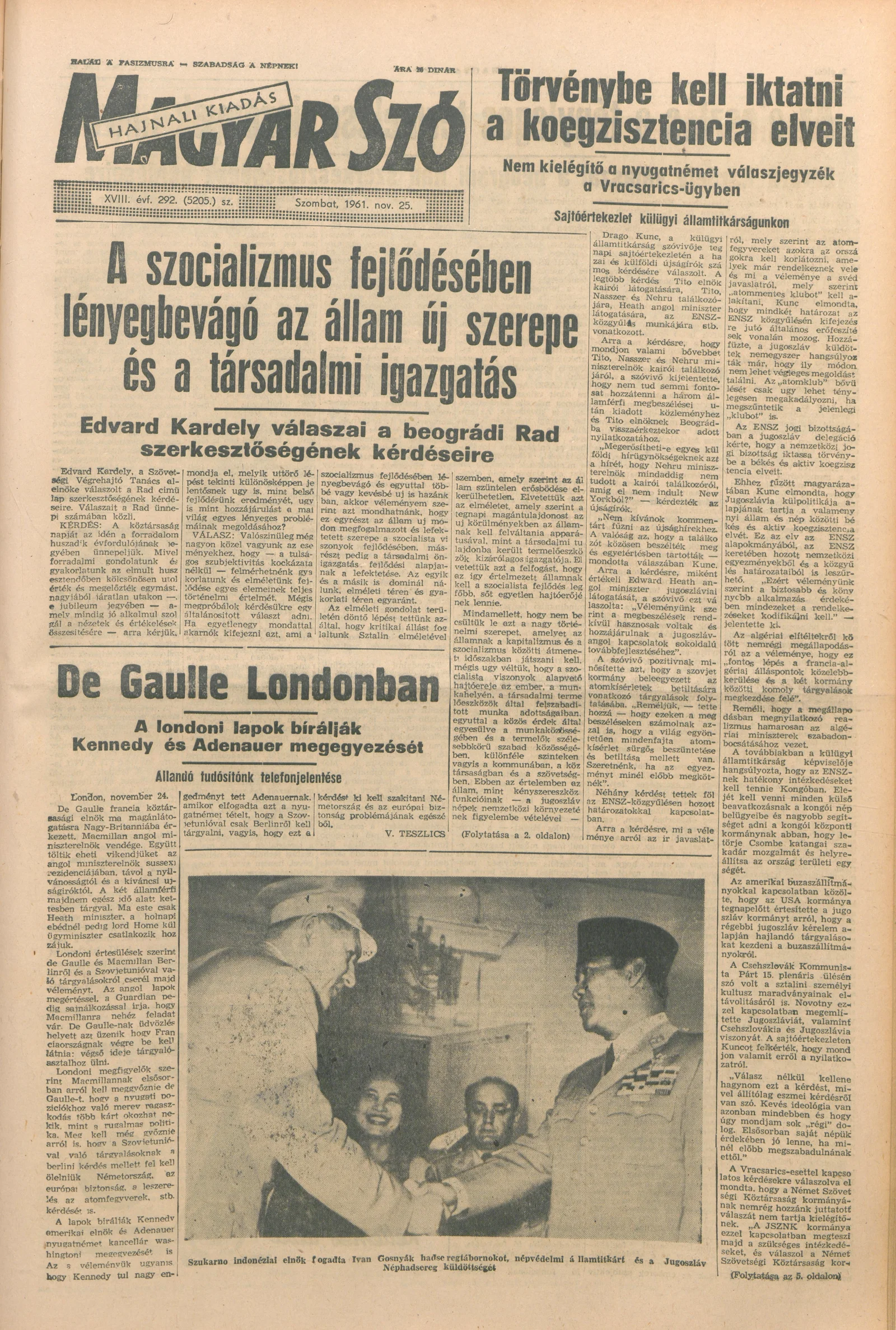 Magyar Szó, 18. évf. 1961. november 25. 292. sz. 1–12. oldal
