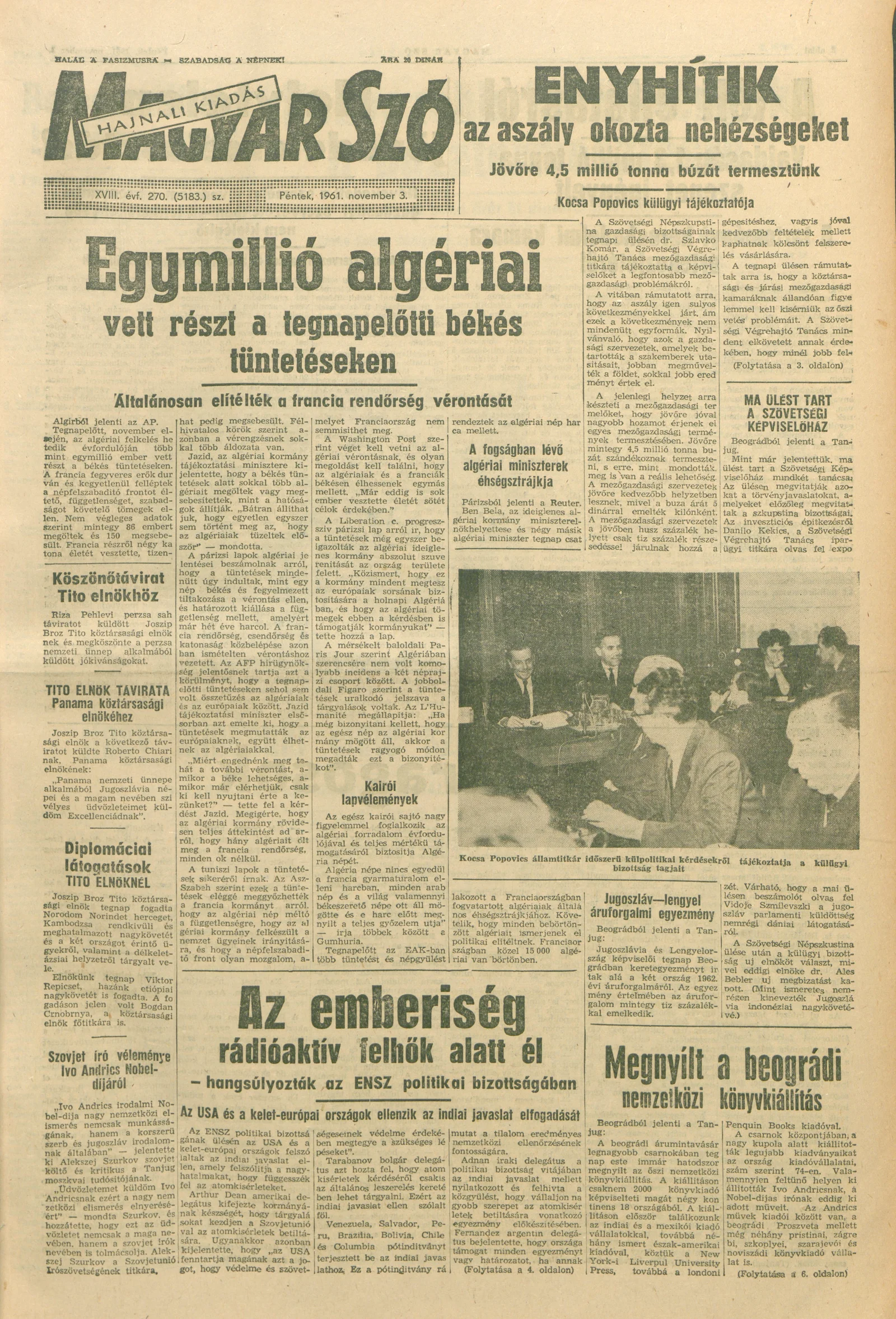 Magyar Szó, 18. évf. 1961. november 3. 270. sz. 1–14. oldal