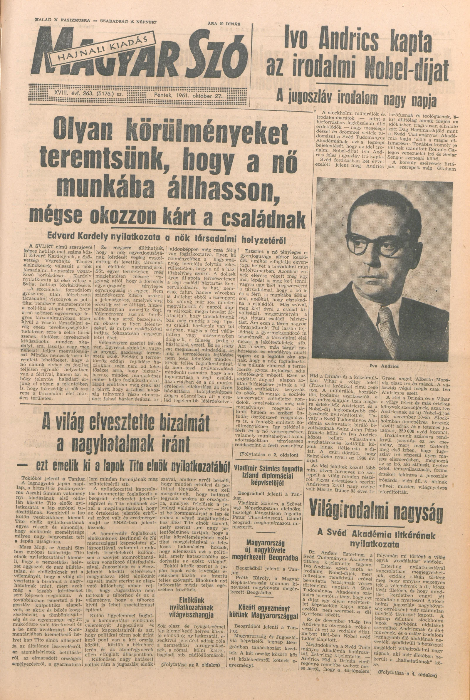 Magyar Szó, 18. évf. 1961. október 27. 263. sz. 1–14. oldal