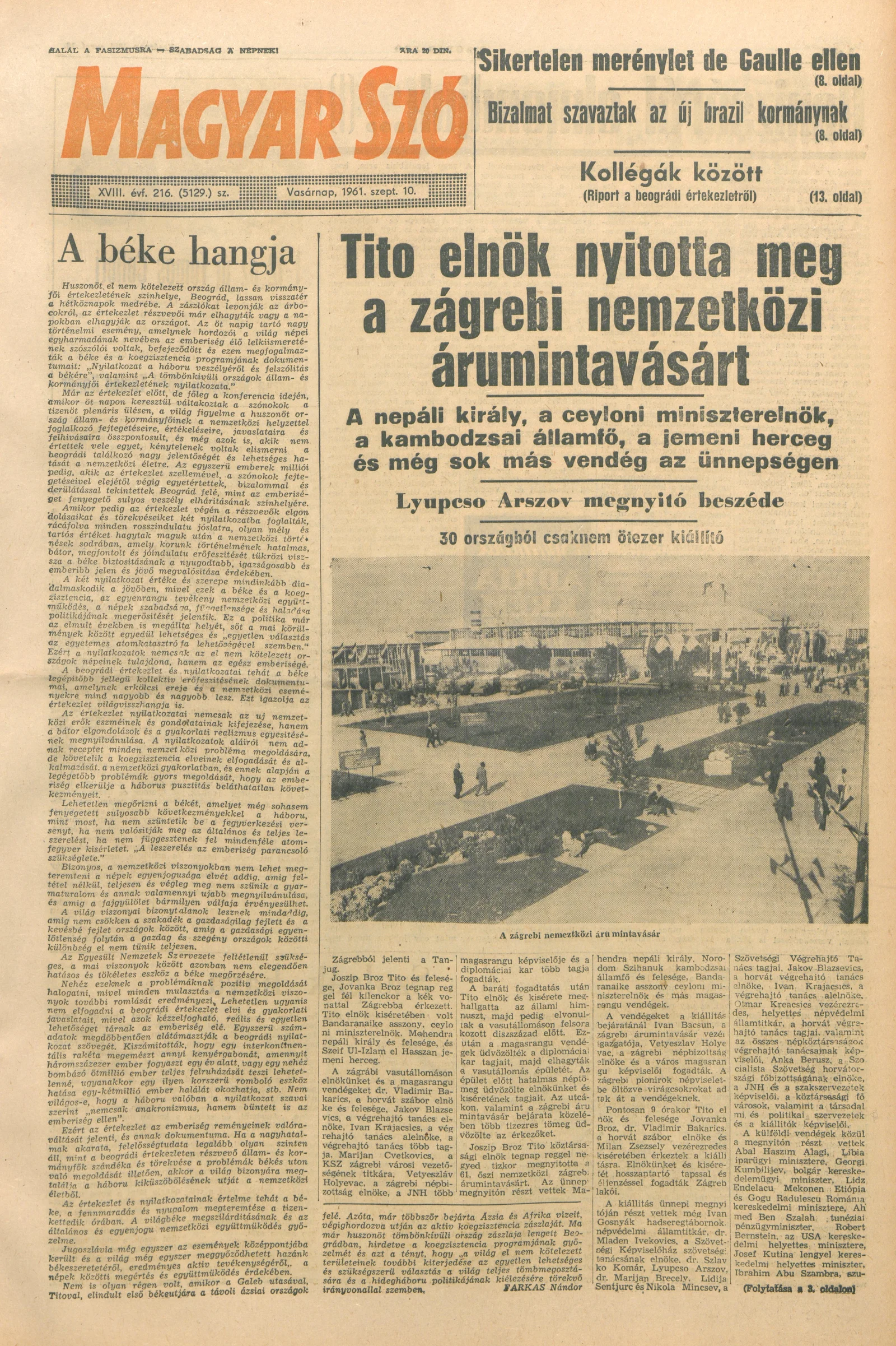 Magyar Szó, 18. évf. 1961. szeptember 10. 216. sz. 1–23. oldal