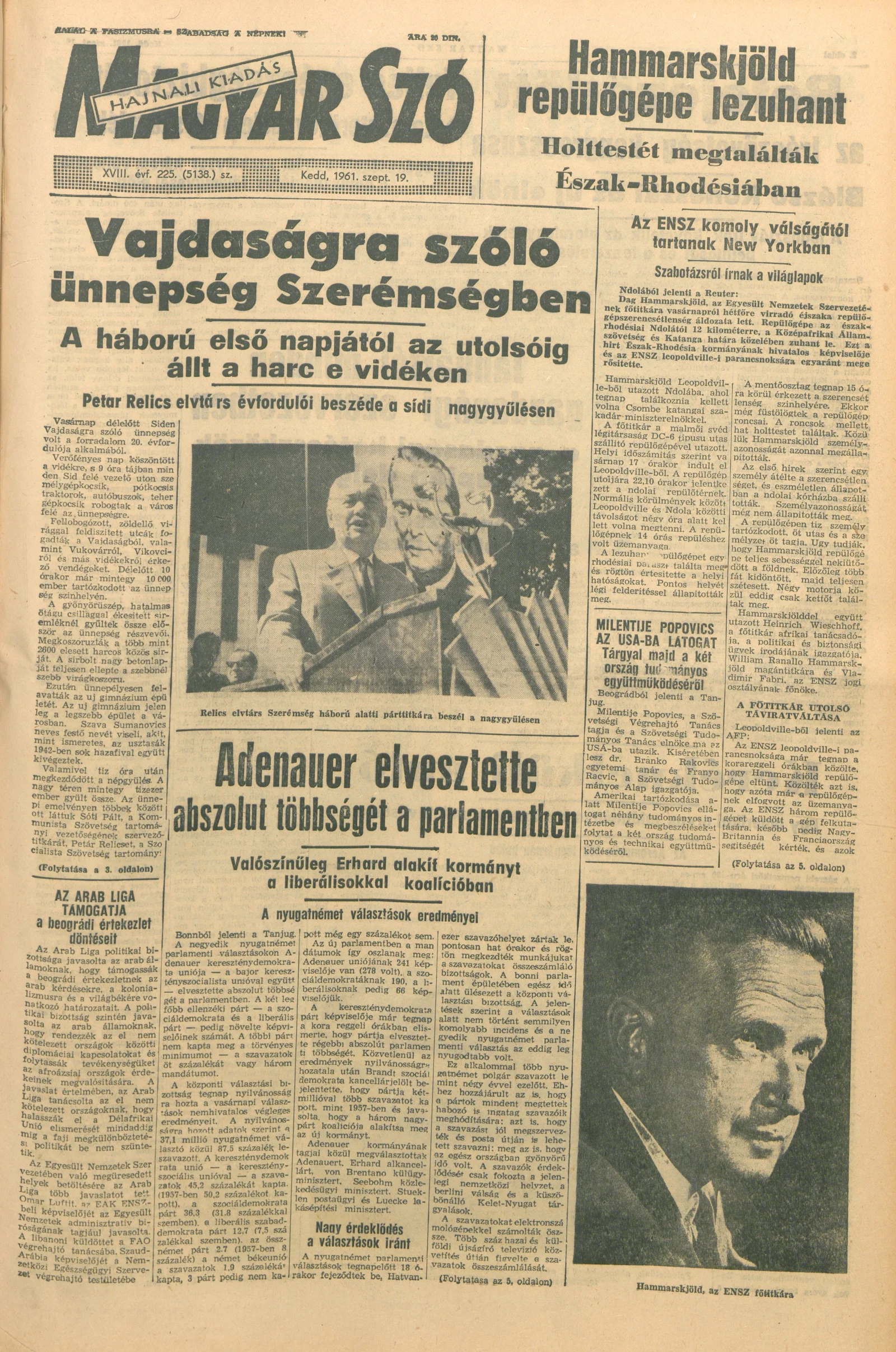 Magyar Szó, 18. évf. 1961. szeptember 19. 225. sz. 1–16. oldal