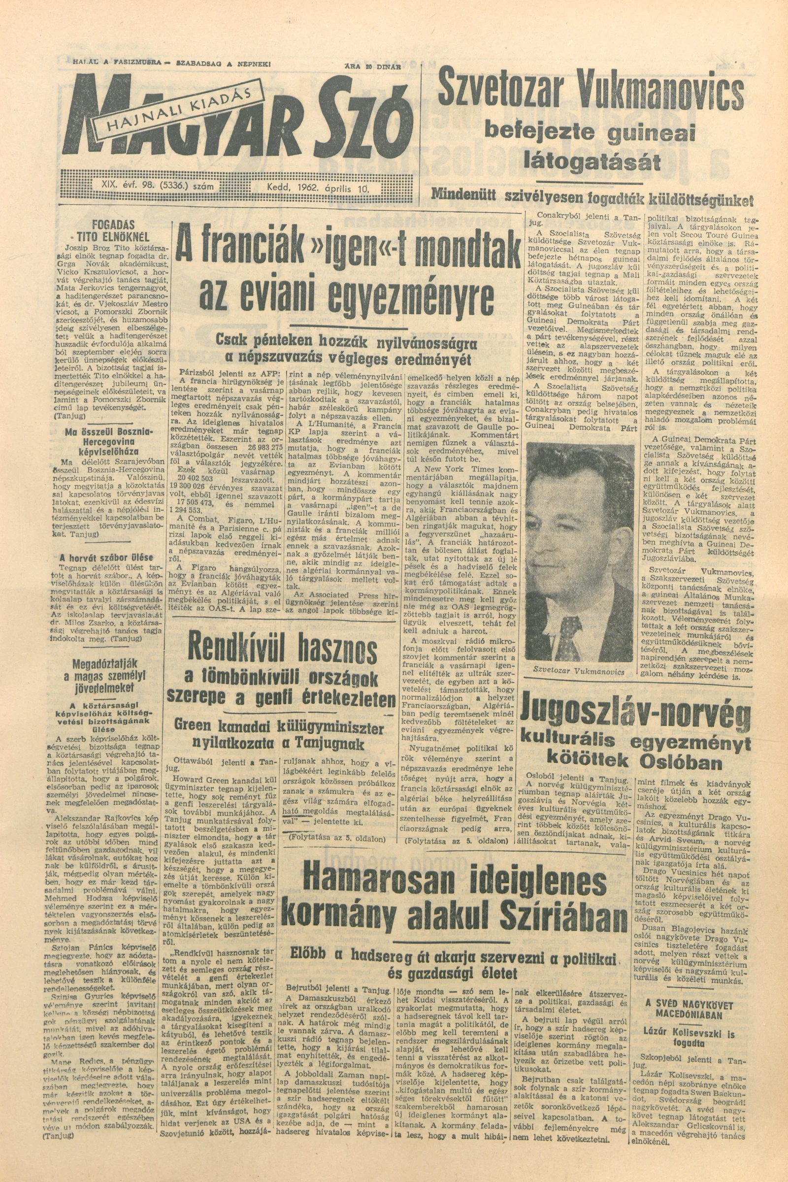 Magyar Szó, 19. évf. 1962. április 10. 98. sz. 1–16. oldal