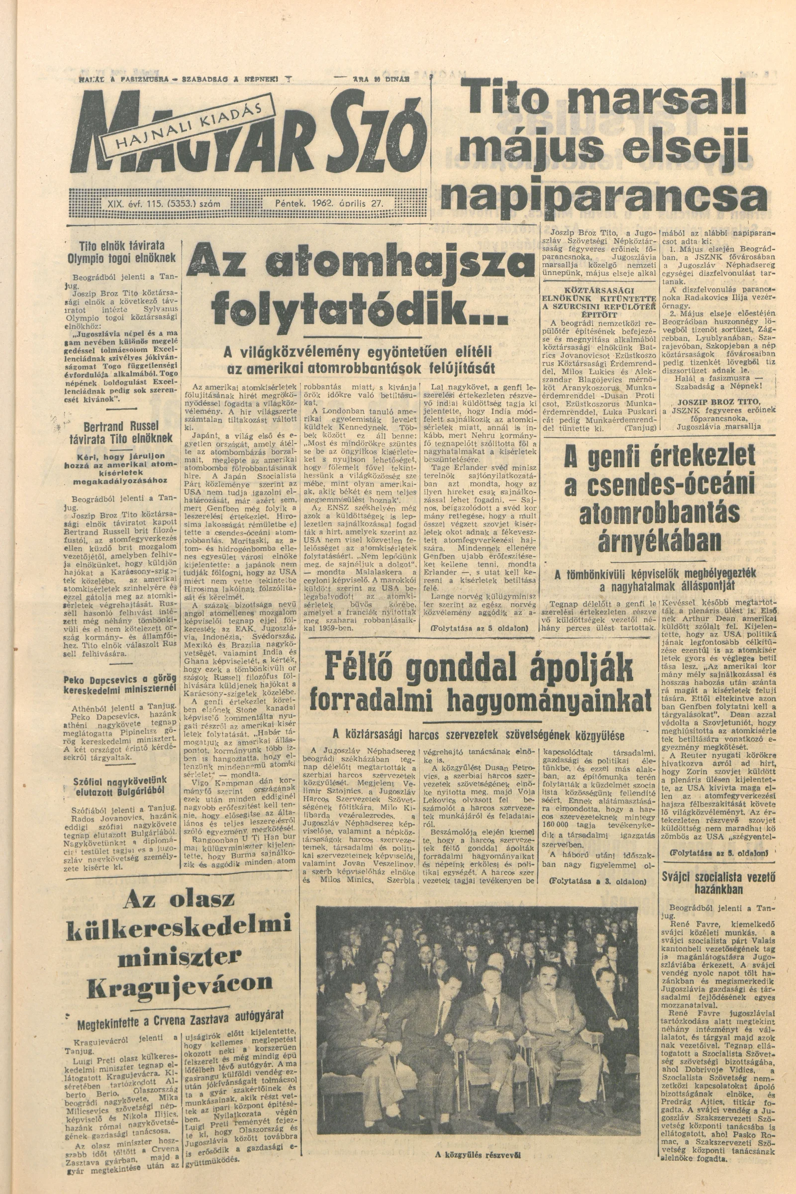 Magyar Szó, 19. évf. 1962. április 27. 115. sz. 1–14. oldal
