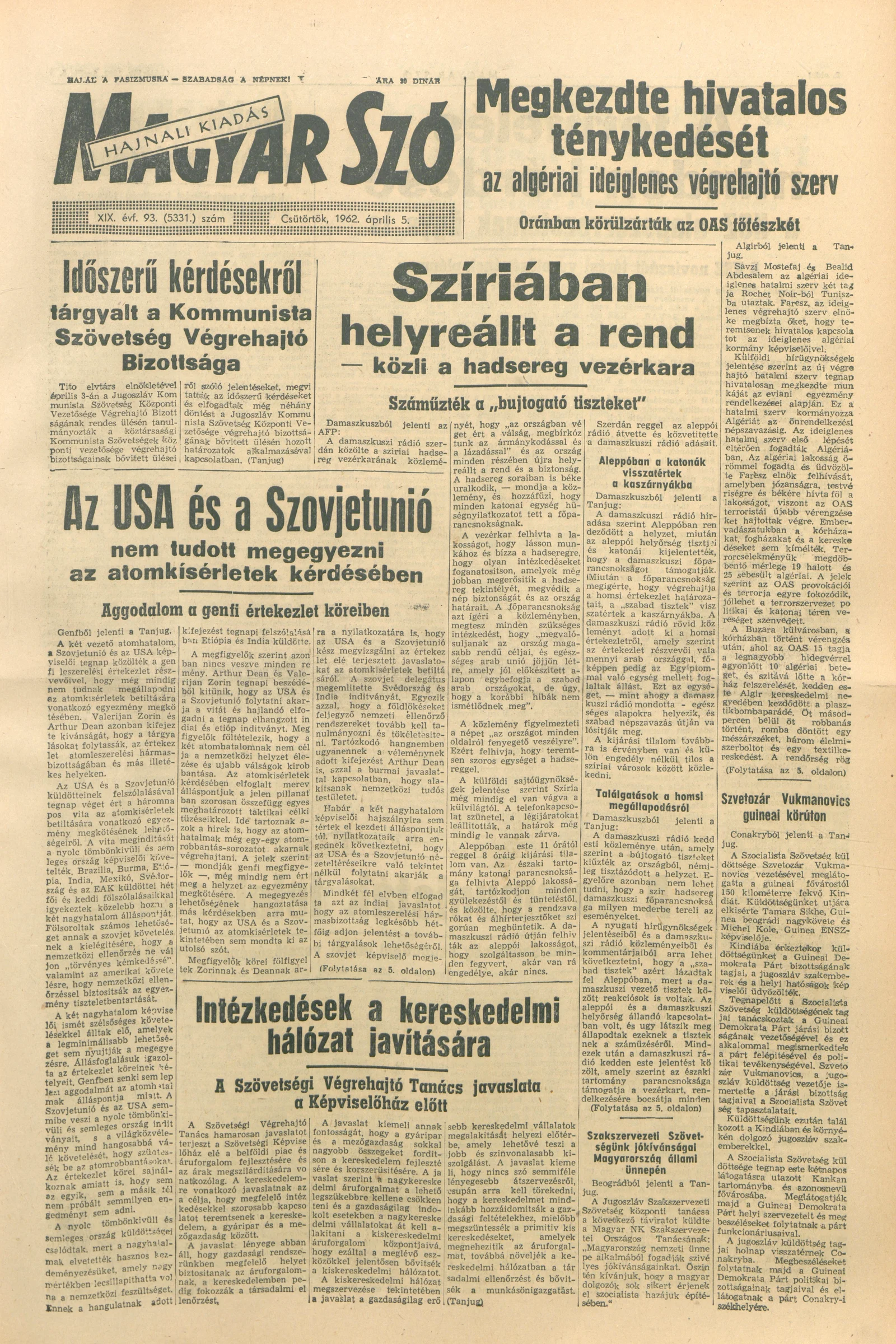 Magyar Szó, 19. évf. 1962. április 5. 93. sz. 1–16. oldal