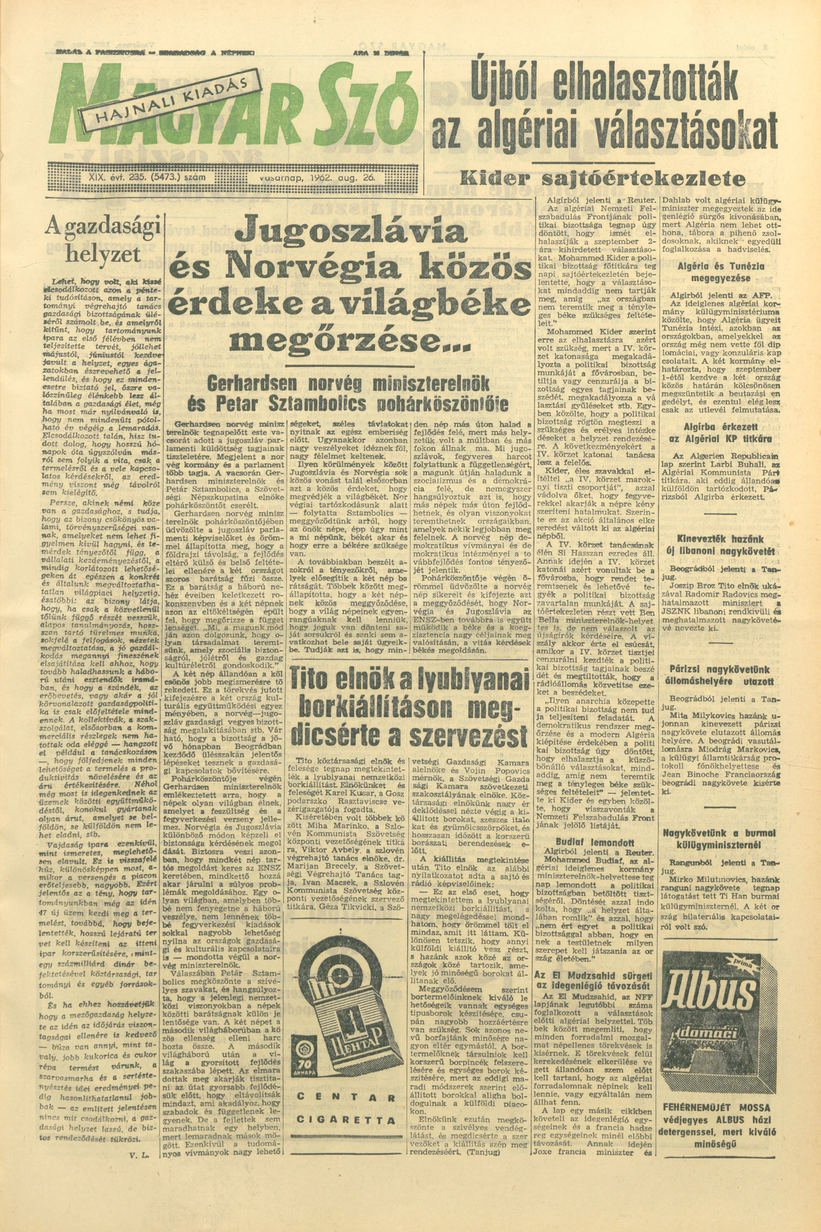 Magyar Szó, 19. évf. 1962. augusztus 26. 235. sz. 1–24. oldal