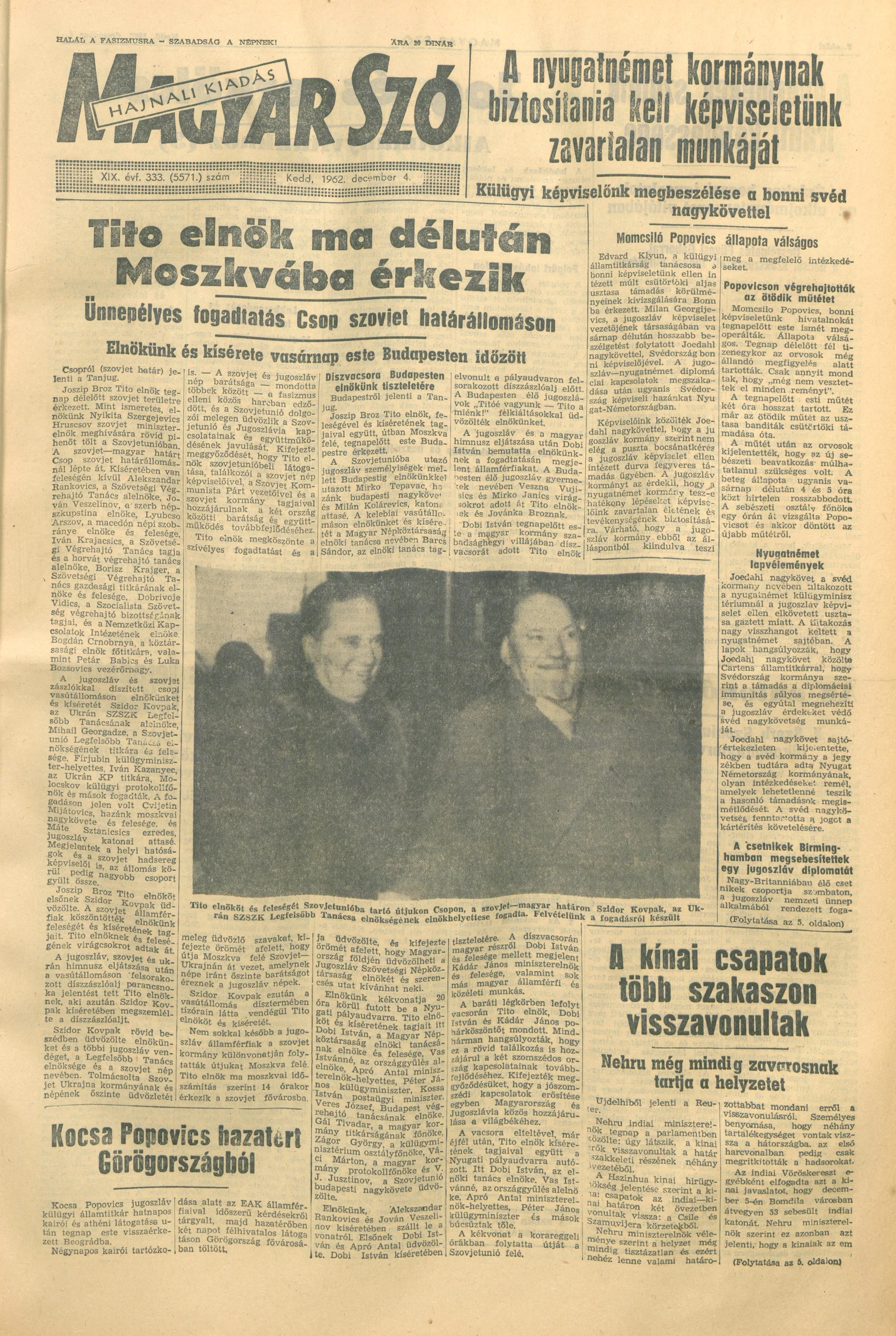Magyar Szó, 19. évf. 1962. december 4. 333. sz. 1–16. oldal