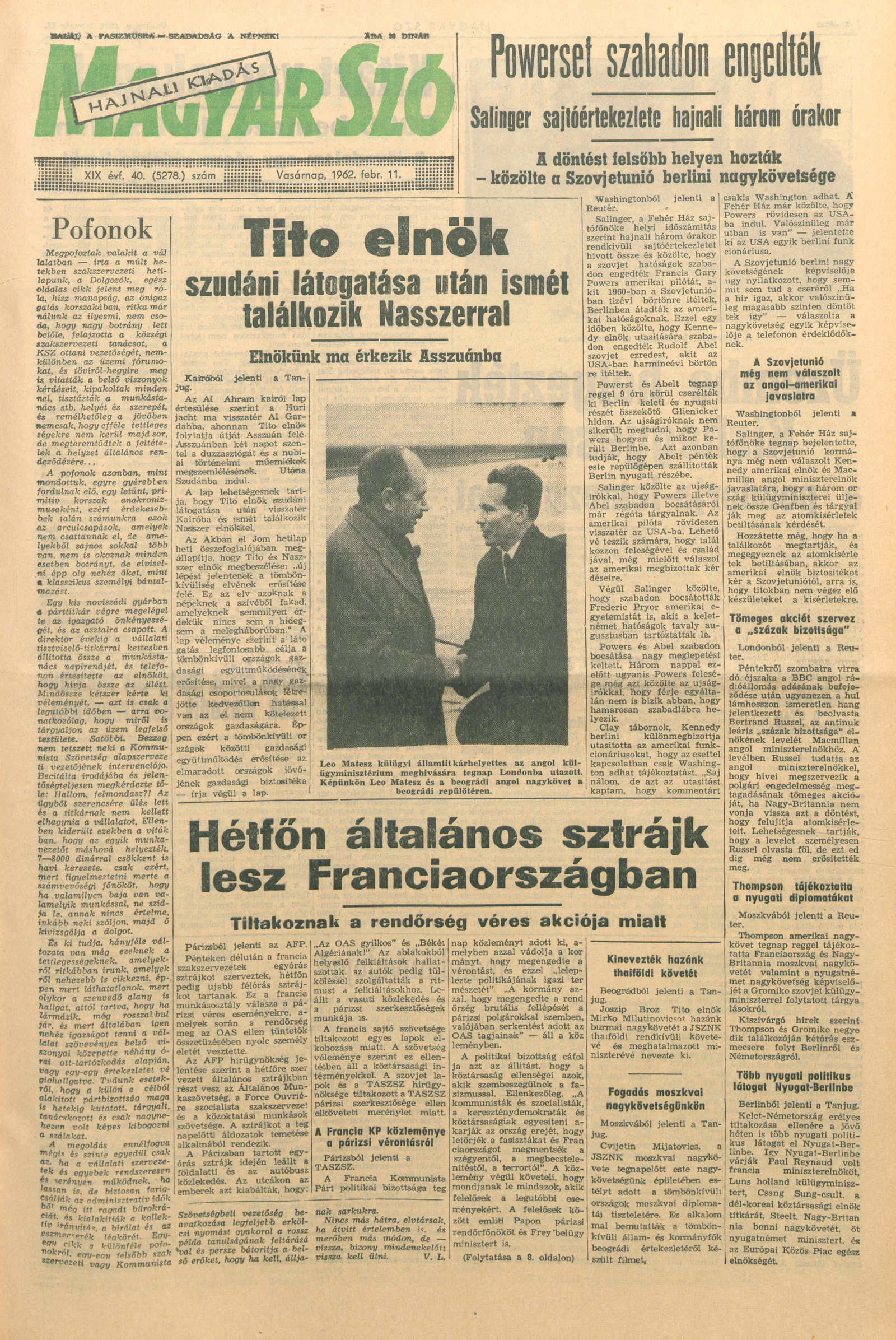 Magyar Szó, 19. évf. 1962. február 11. 40. sz. 1–24. oldal