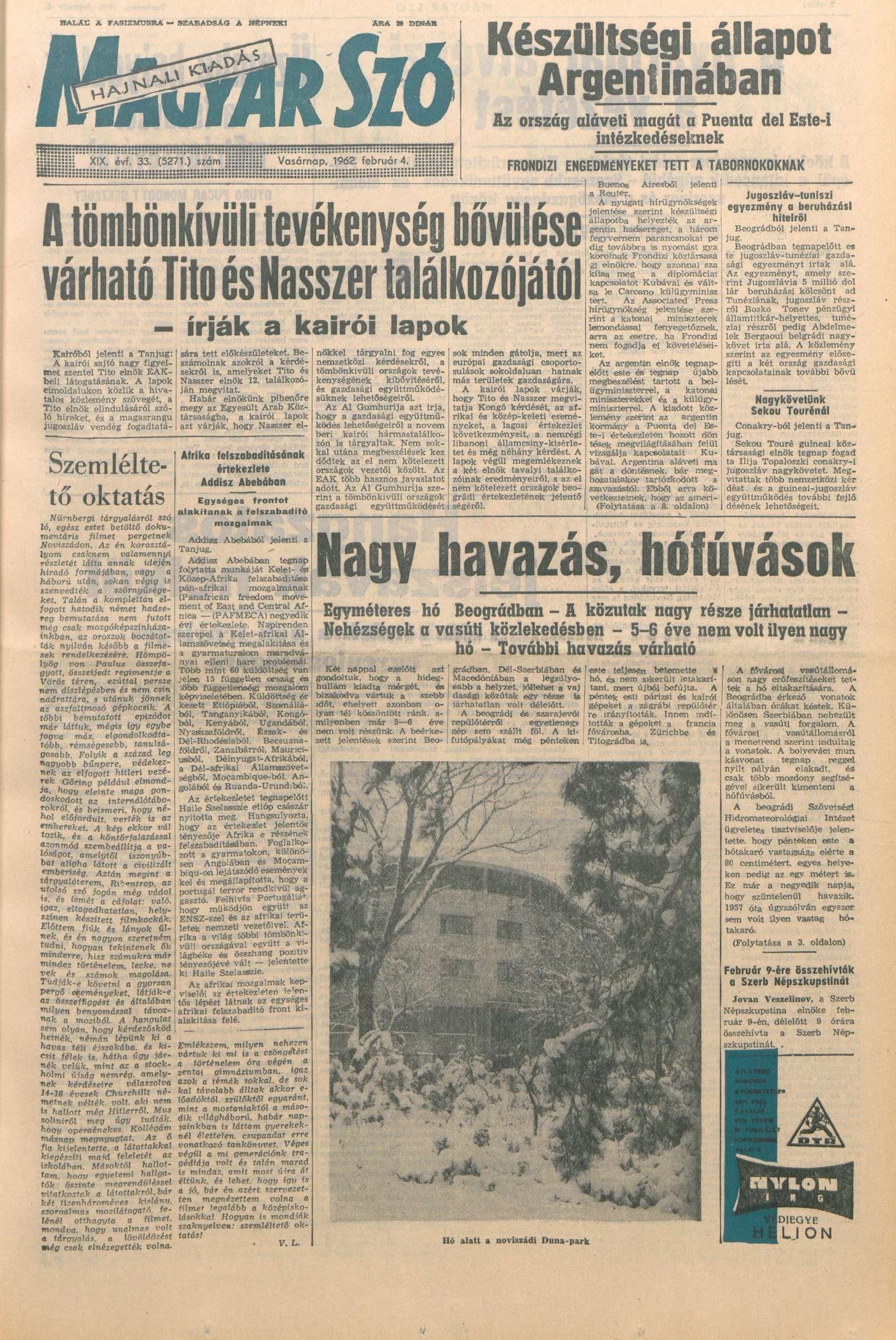 Magyar Szó, 19. évf. 1962. február 4. 33. sz. 1–24. oldal