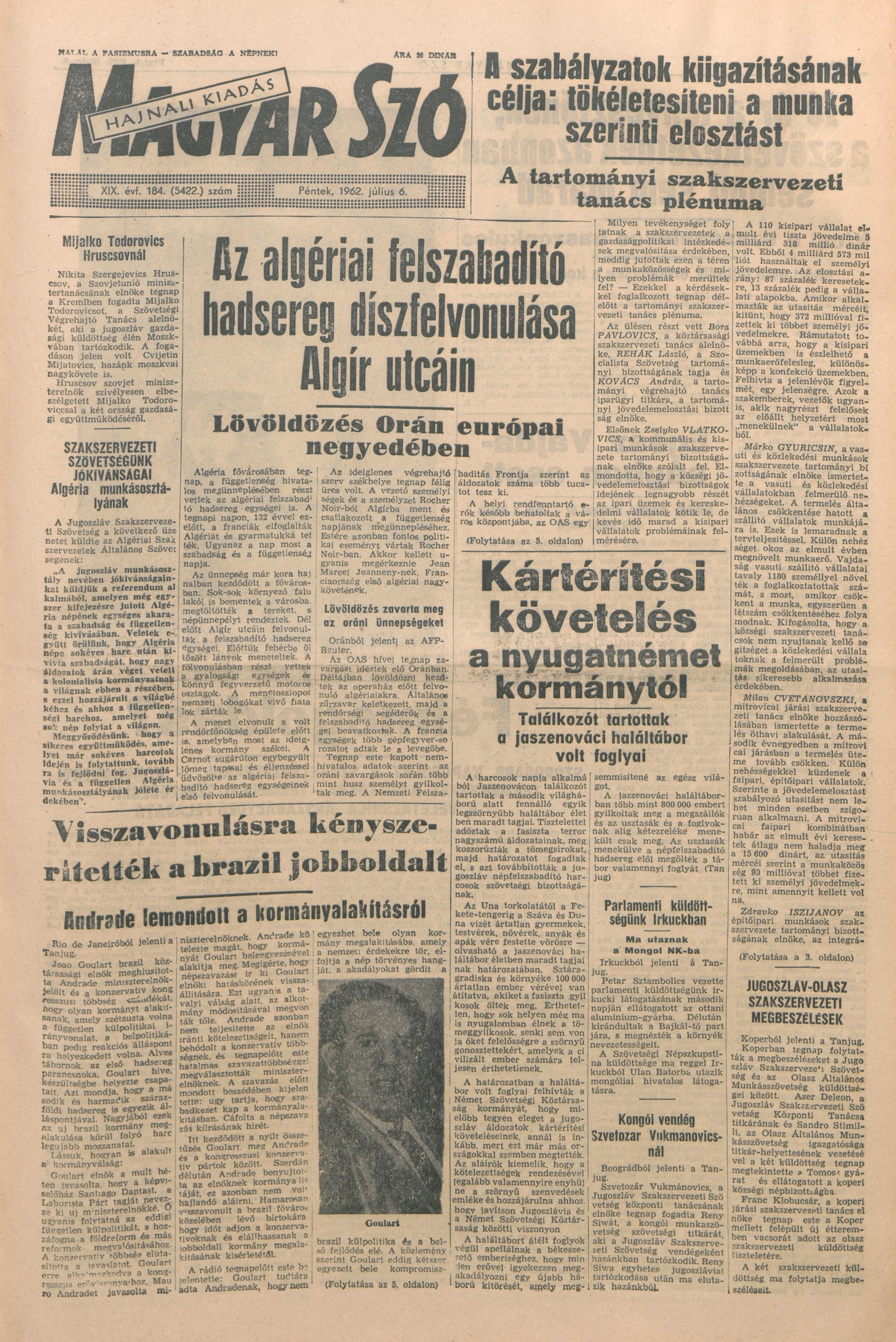 Magyar Szó, 19. évf. 1962. július 6. 184. sz. 1–12. oldal