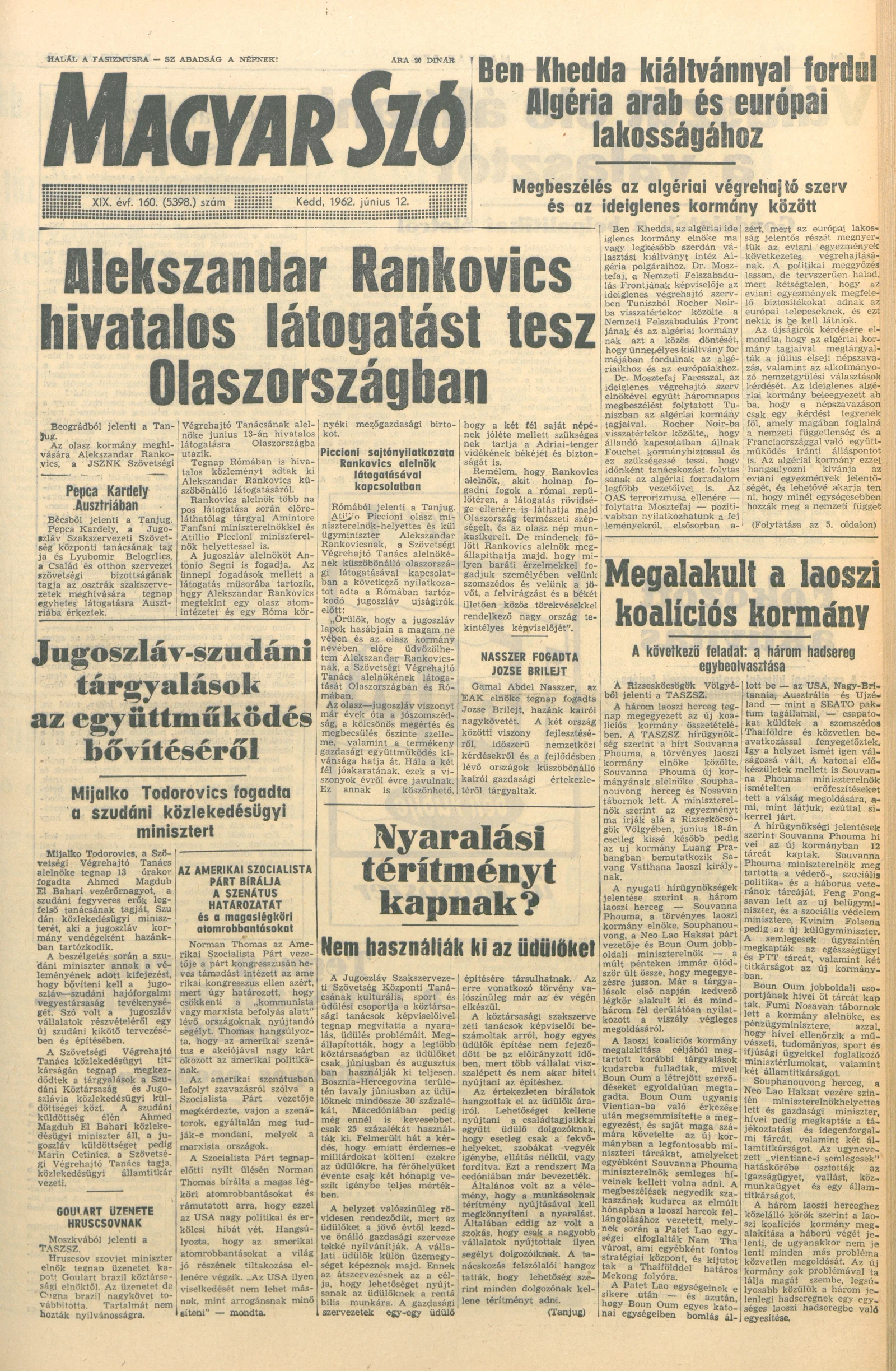 Magyar Szó, 19. évf. 1962. június 12. 160. sz. 1–14. oldal