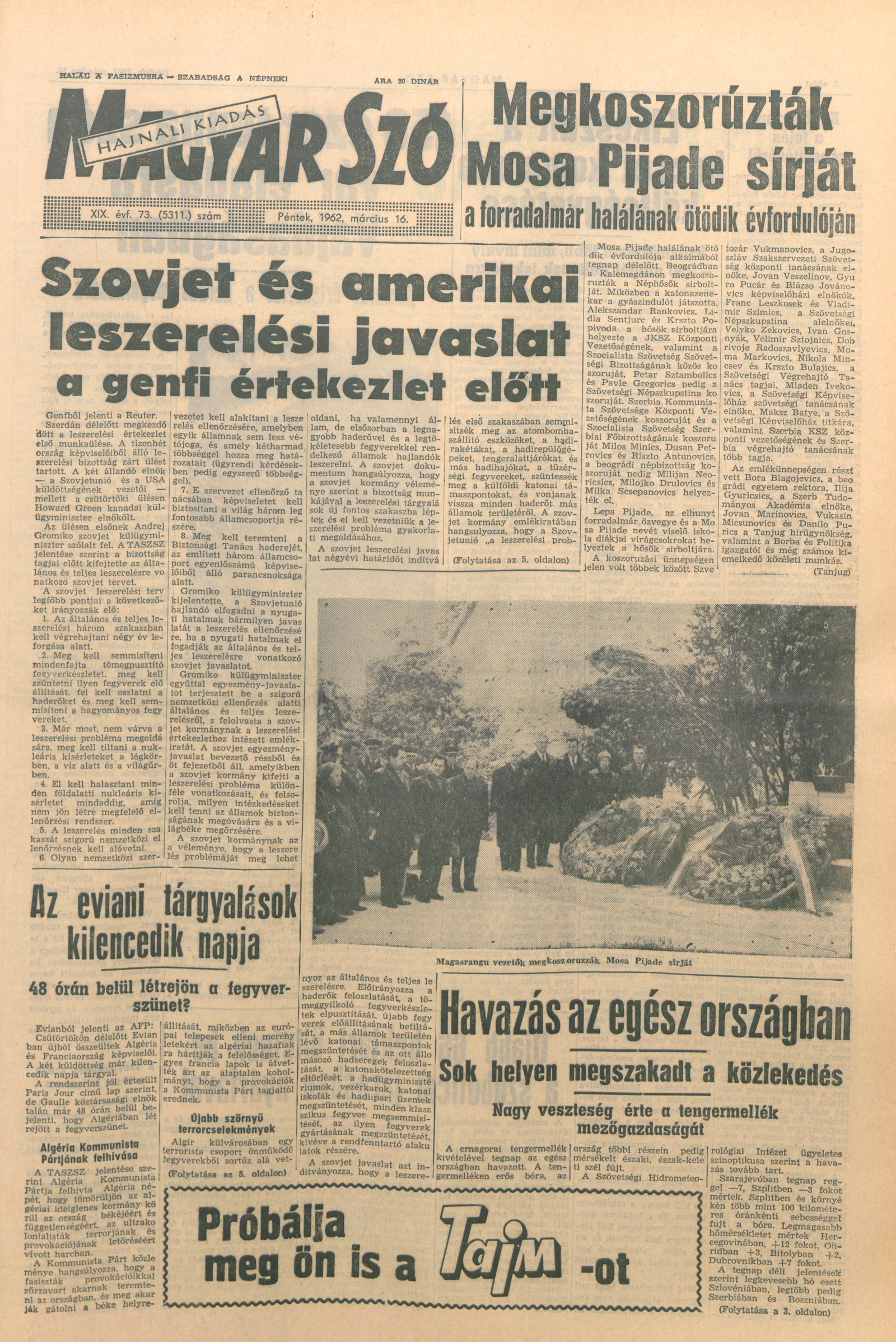 Magyar Szó, 19. évf. 1962. március 16. 73. sz. 1–14. oldal