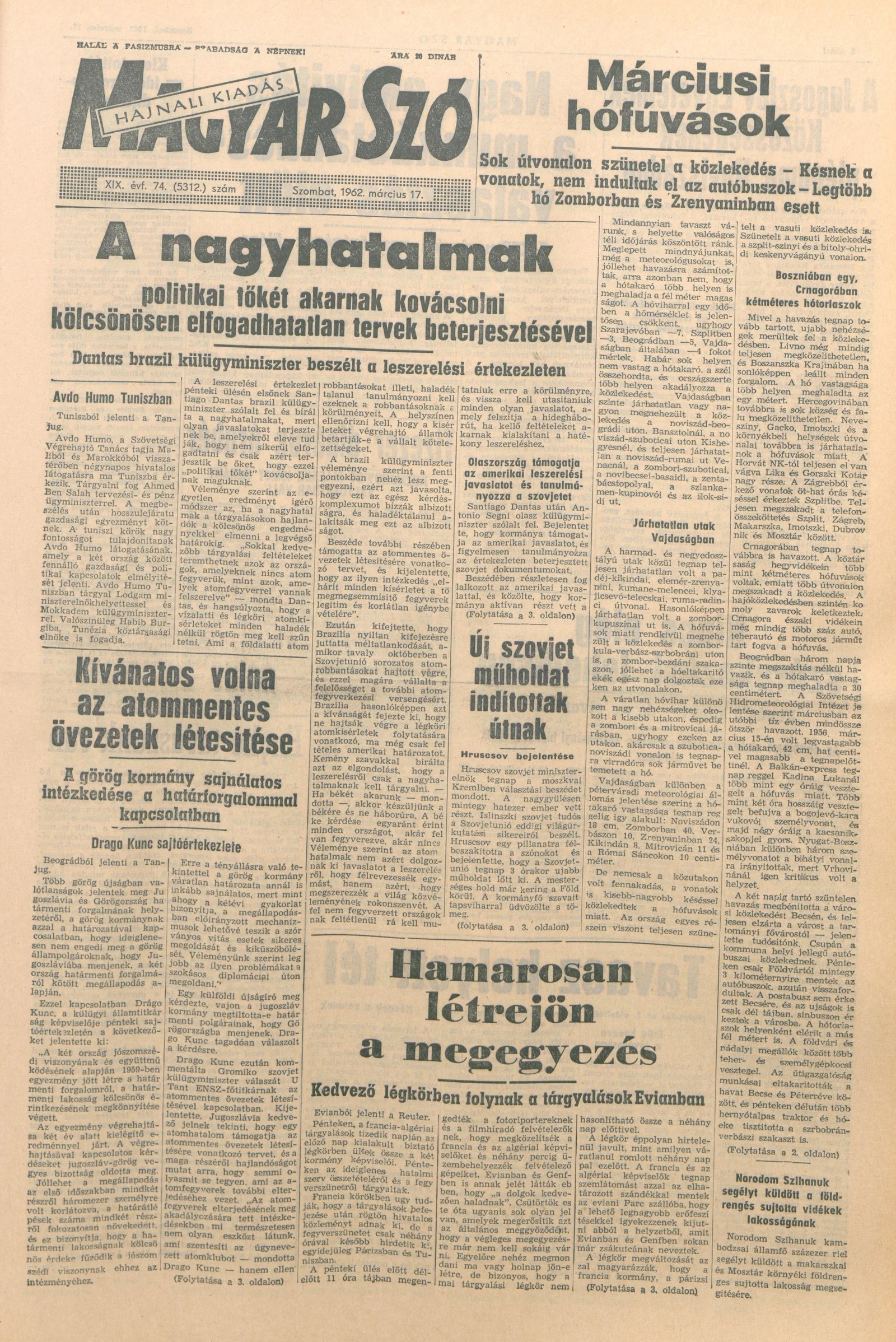Magyar Szó, 19. évf. 1962. március 17. 74. sz. 1–8. oldal