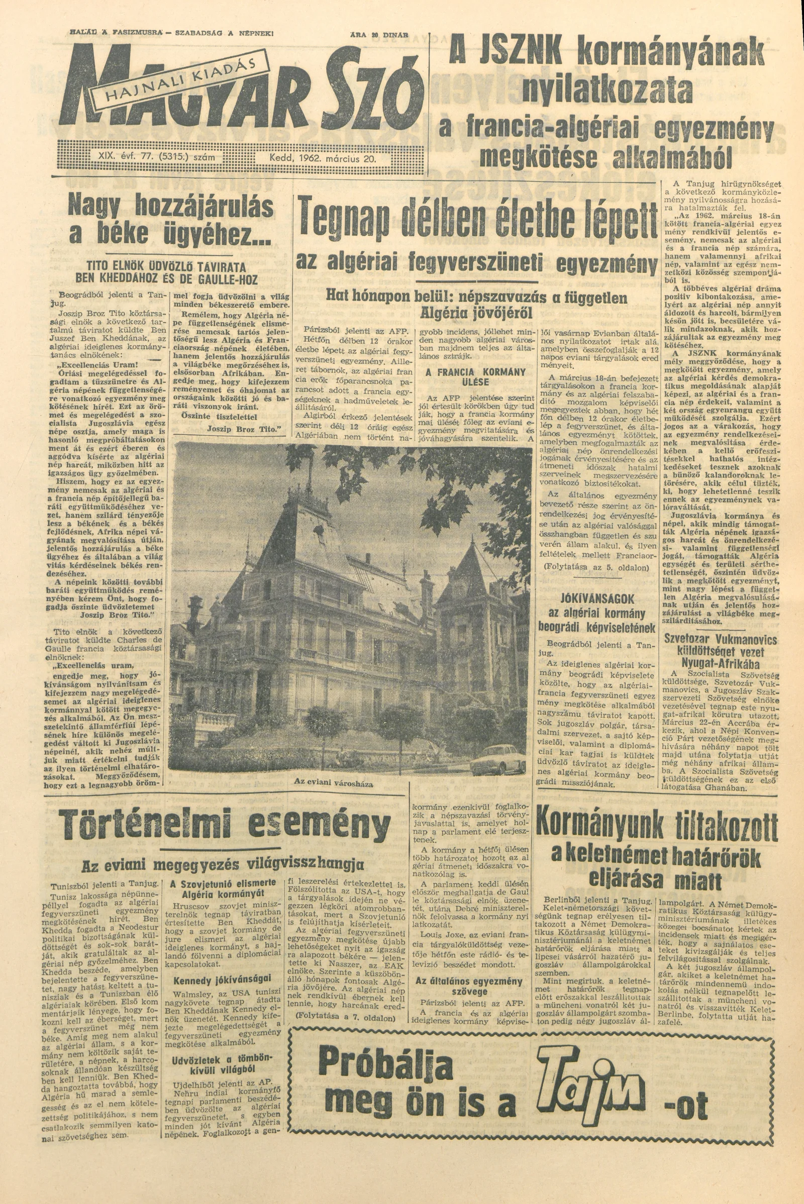 Magyar Szó, 19. évf. 1962. március 20. 77. sz. 1–16. oldal