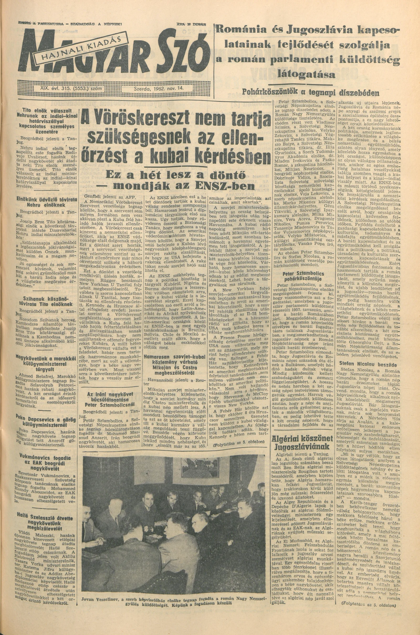 Magyar Szó, 19. évf. 1962. november 14. 315. sz. 1–14. oldal