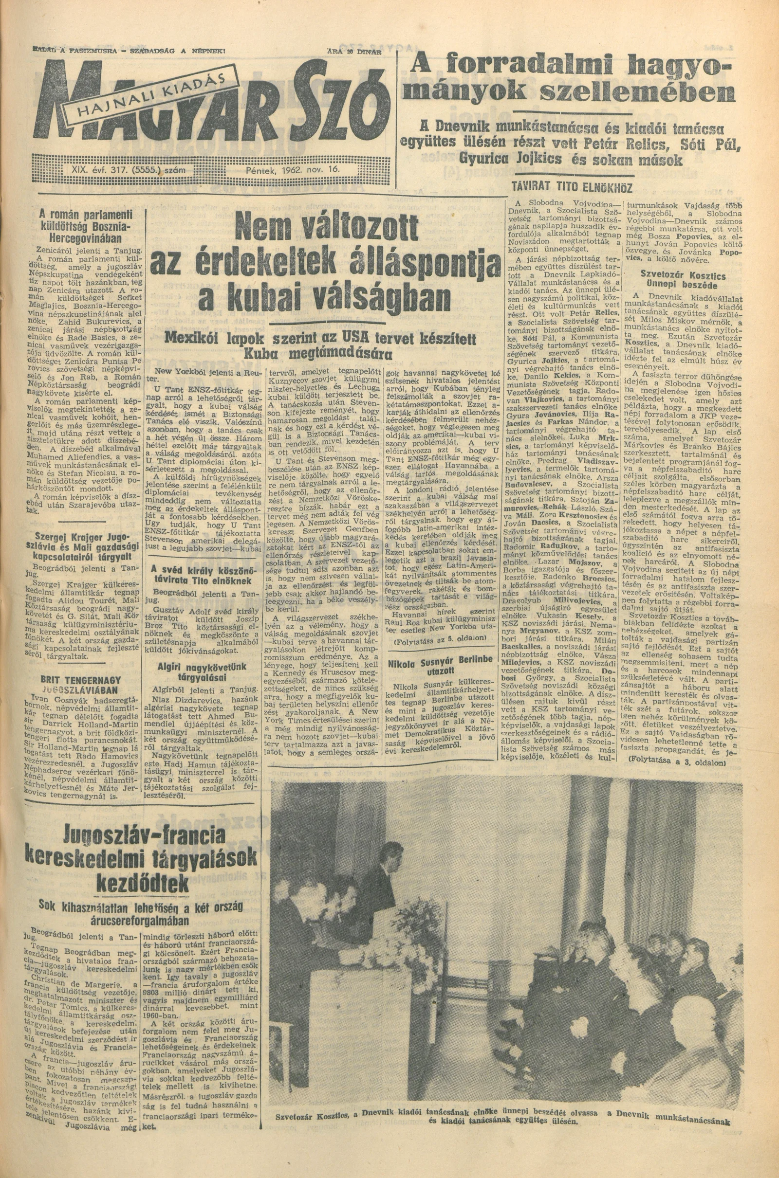Magyar Szó, 19. évf. 1962. november 16. 317. sz. 1–12. oldal
