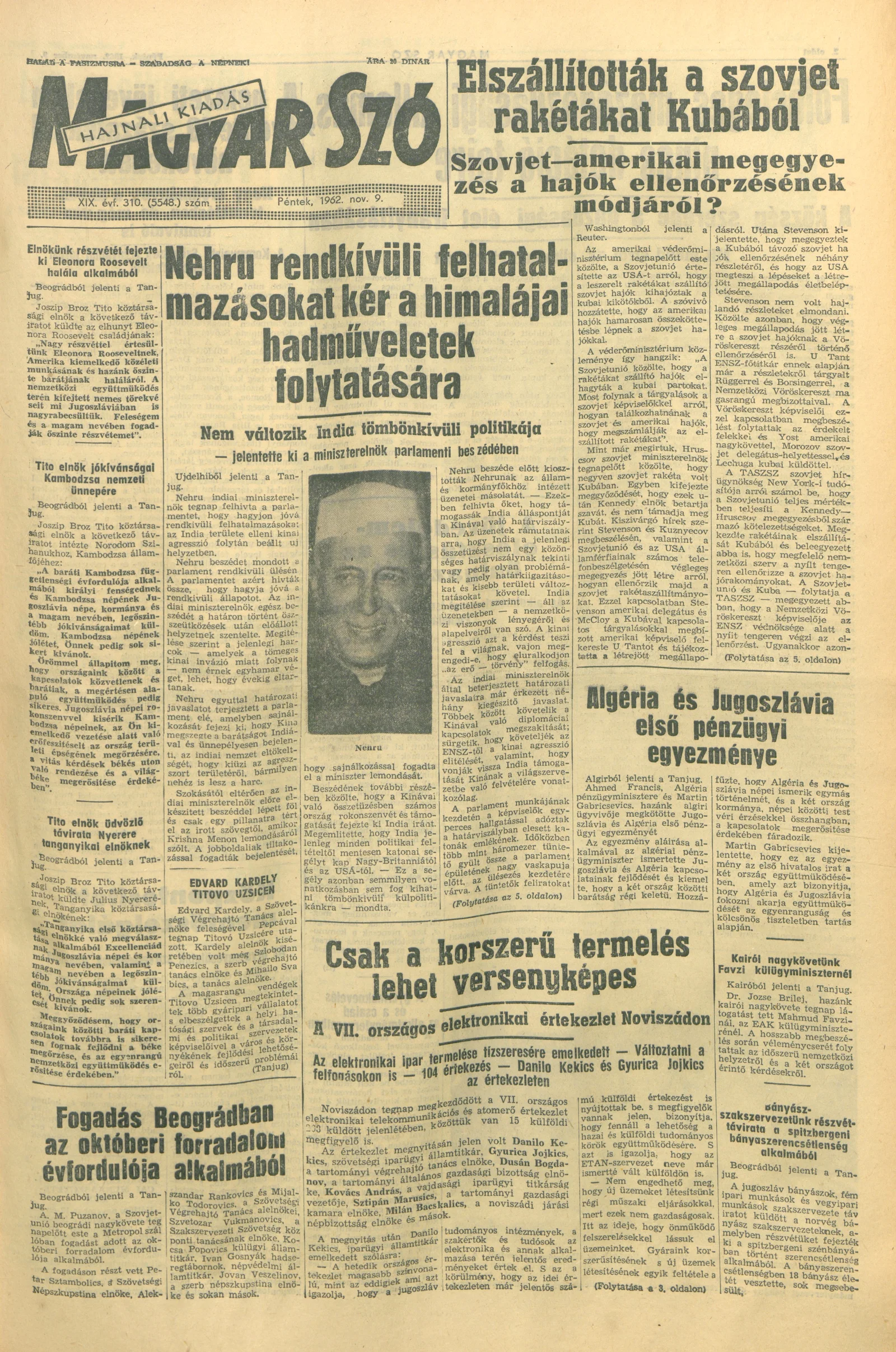 Magyar Szó, 19. évf. 1962. november 9. 310. sz. 1–14. oldal