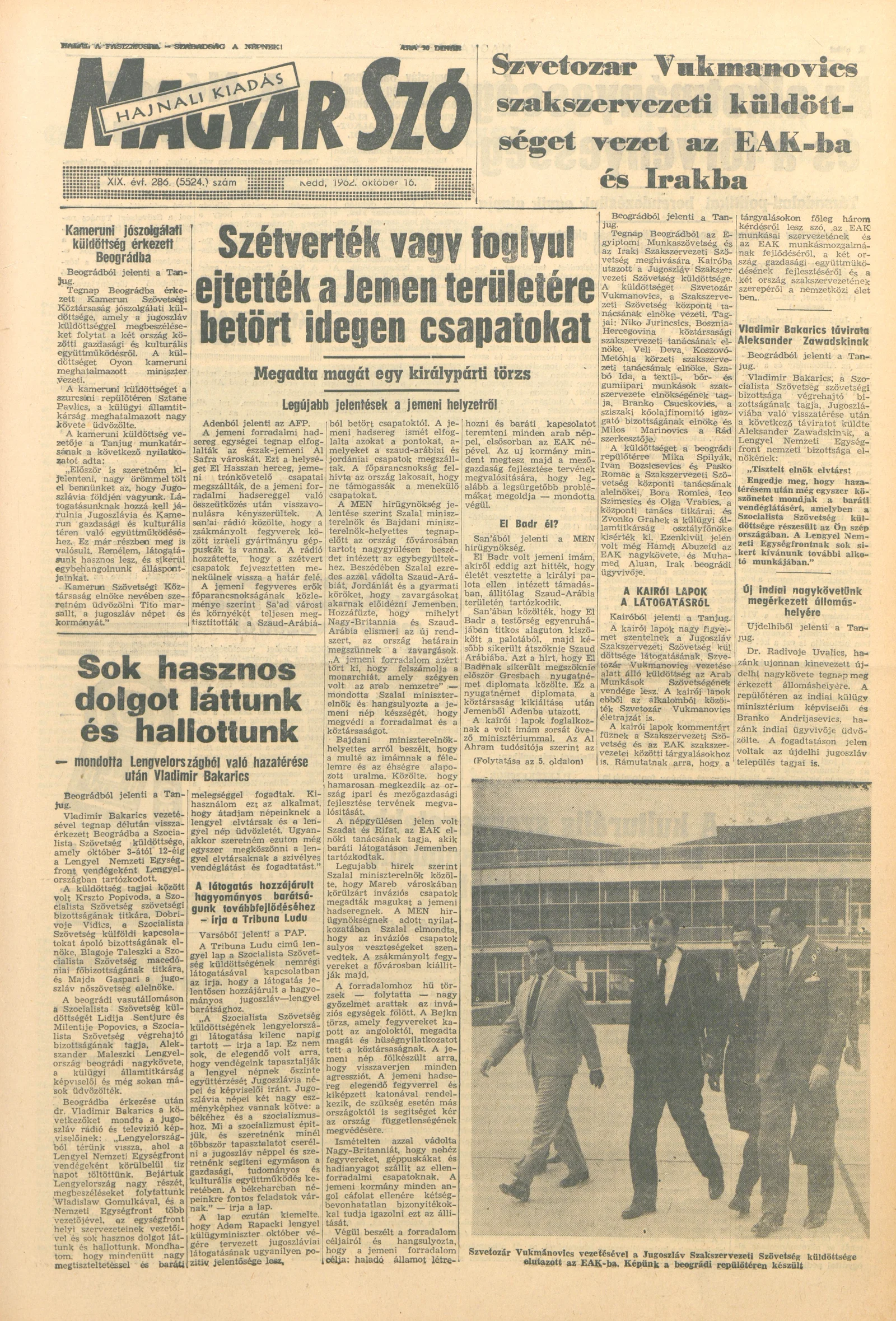 Magyar Szó, 19. évf. 1962. október 16. 286. sz. 1–16. oldal